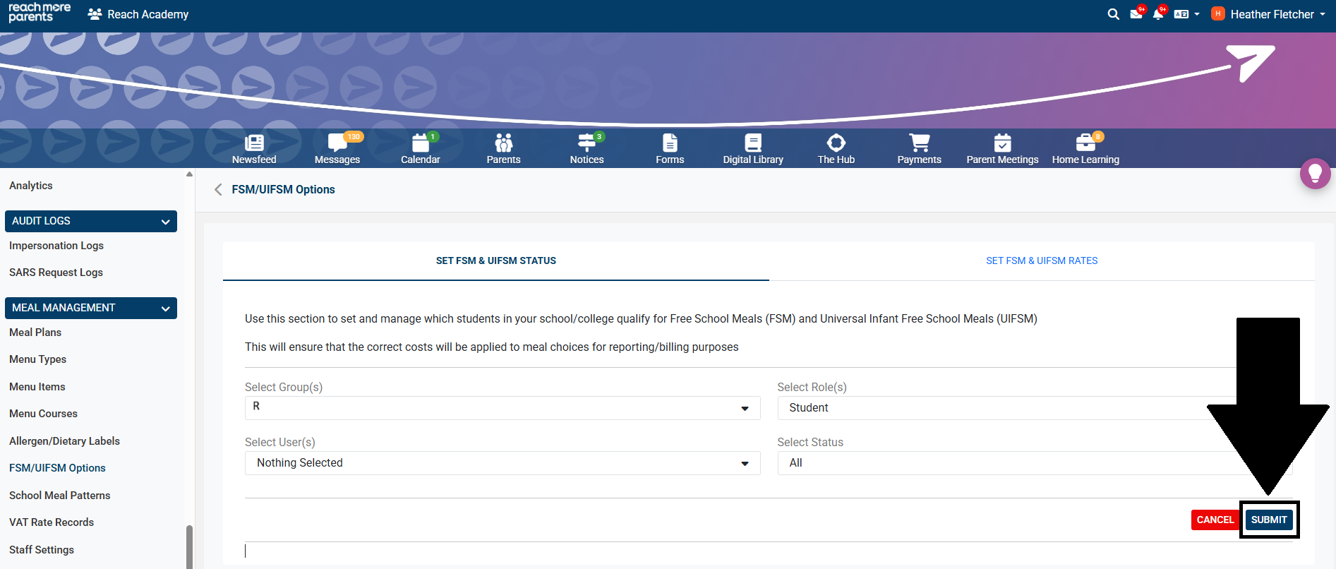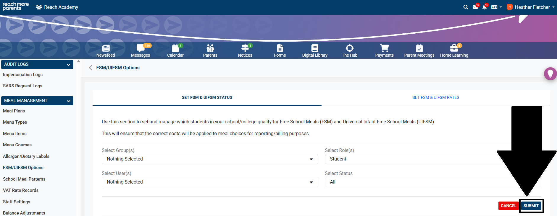 2) Please ensure you have set your FSM/UIFSM rates in your ReachMoreParents platform once pupils have been assigned their FSM/UIFSM status. To find out more on how to set FSM/UIFSM rates, please review our guide here .