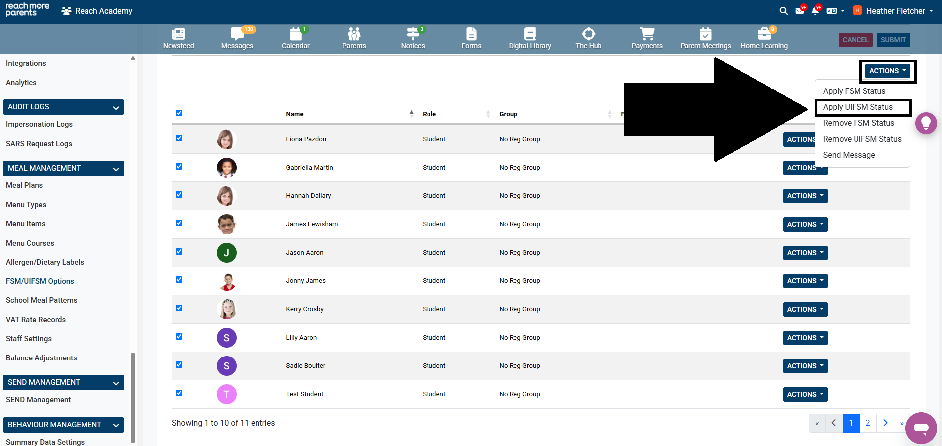 When new Reception pupils are enrolled at your school in the new Autumn term, you will need to manually apply the UIFSM status for all pupils within the year group in ReachMoreParents. Once the UIFSM status has been applied, it will remain in place until you manually remove it and therefore, there should be no need to repeat this process when this cohort start in Year 1 or 2. To apply UIFSM status to your Reception pupils, please follow the steps below: