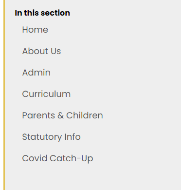 Every content page as a side menu, also known as either Quick Links or In This Section, depending on the theme your site uses.