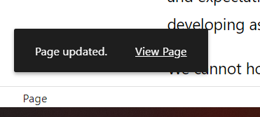 Once clicked, the website will publish the changes and present you with a box in the bottom left stating Page Updated. This typically takes between 10-30 seconds.