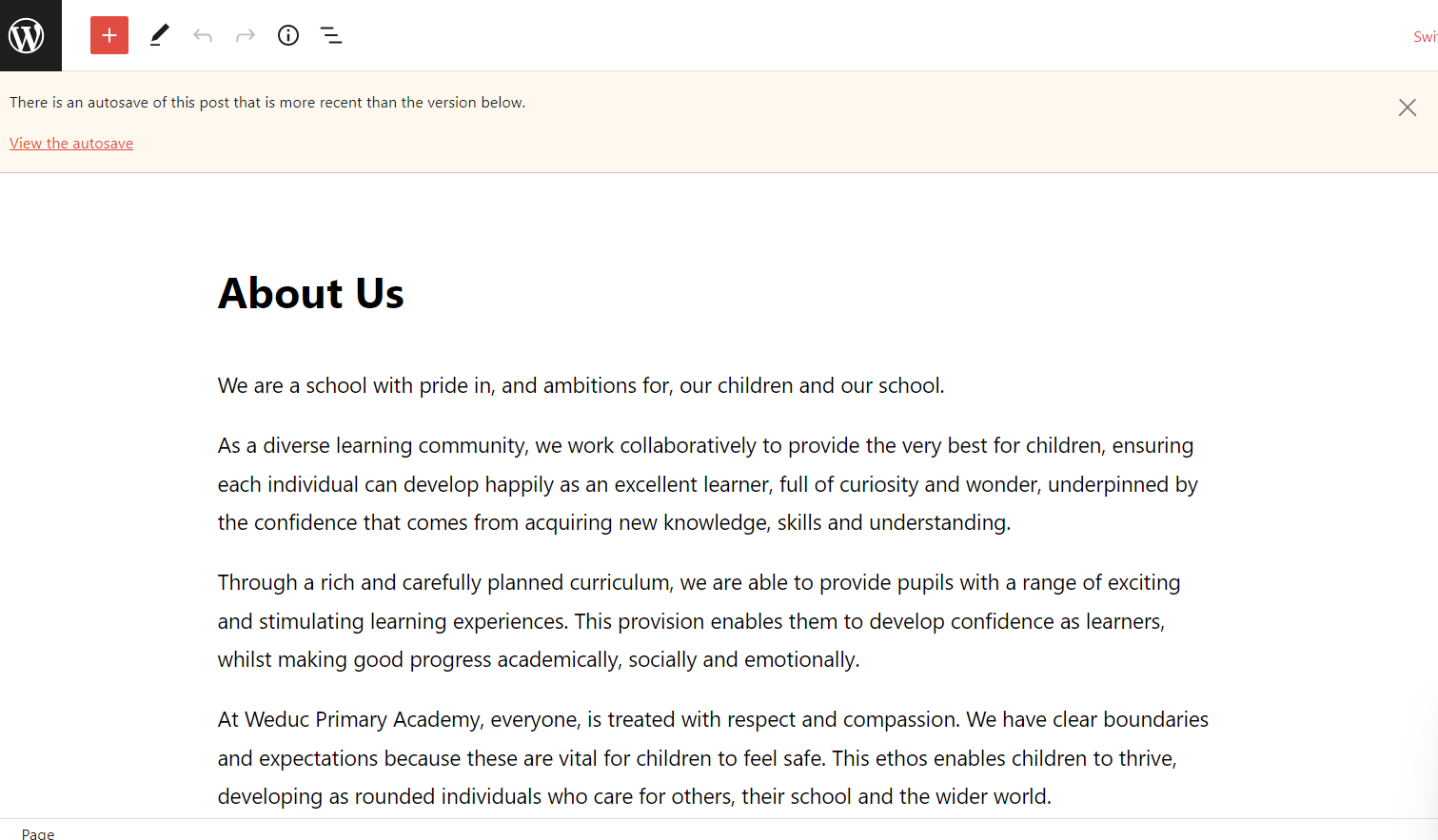This will then open up the editor, showing you all the content that currently exists on this page of the website.