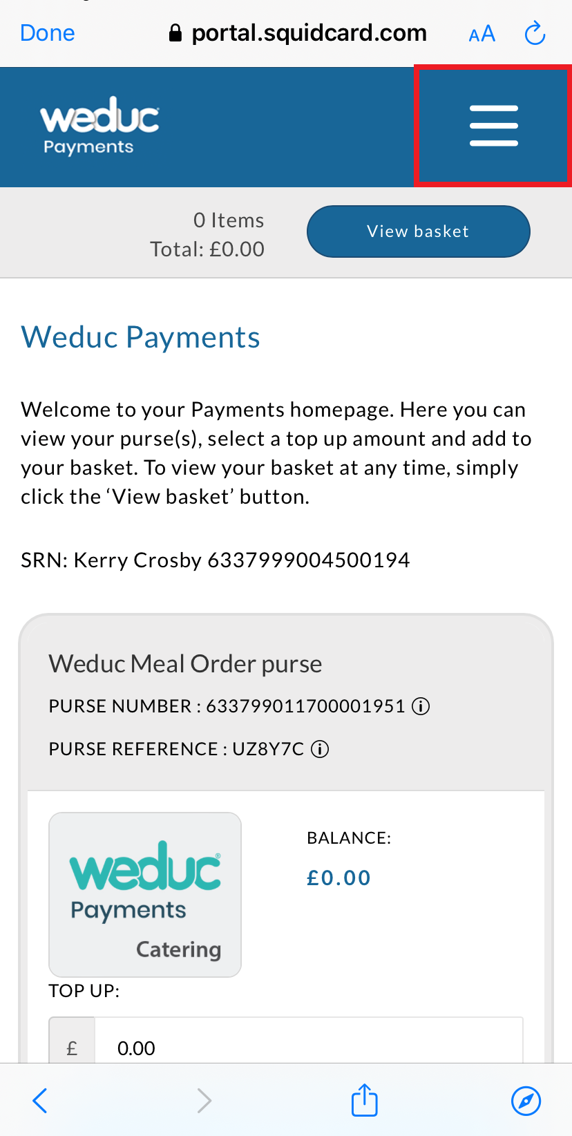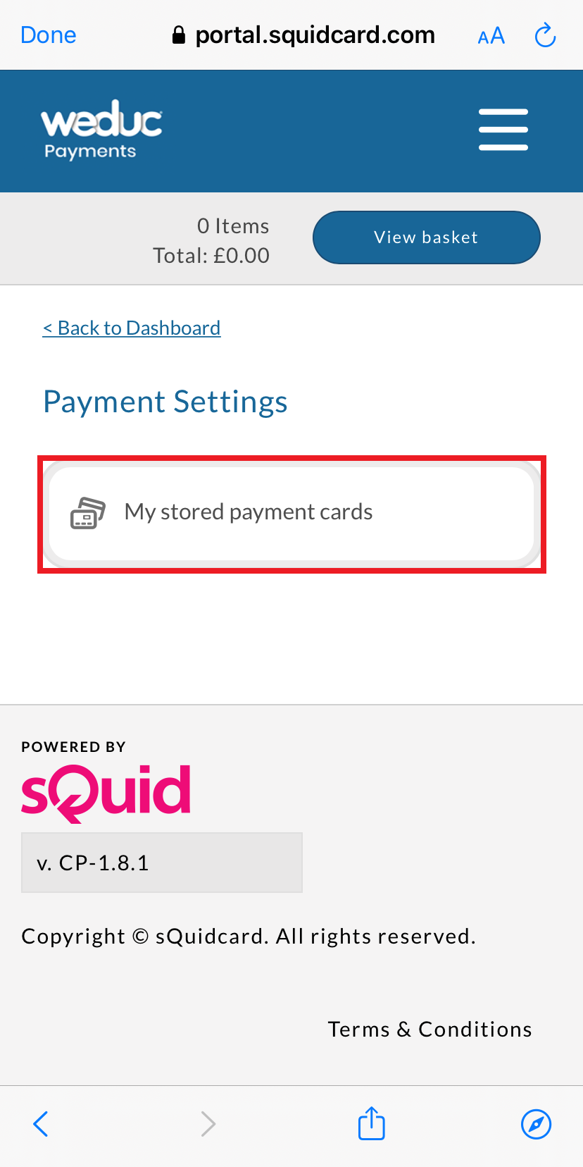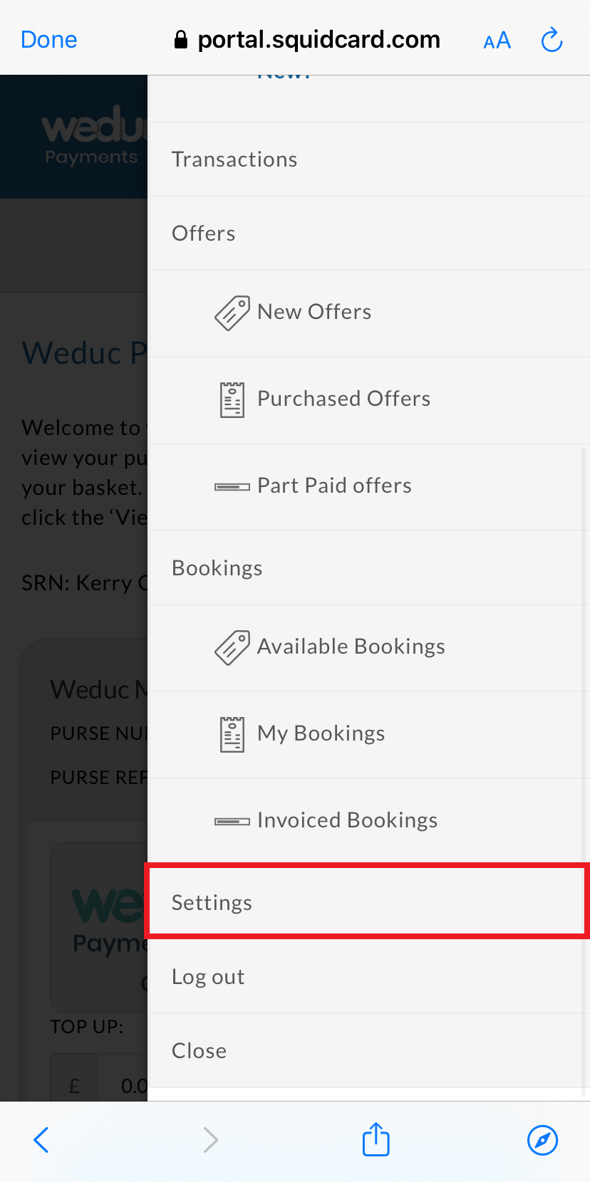 3) Tap Payments. This will log you in to sQuid via a browser window.