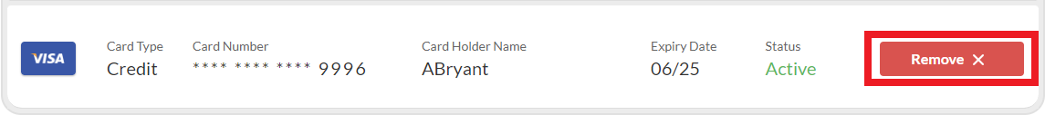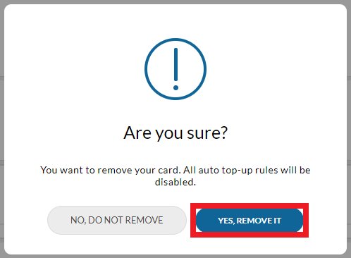 7. Tap Remove on the payment card you wish to disable Auto top up for.