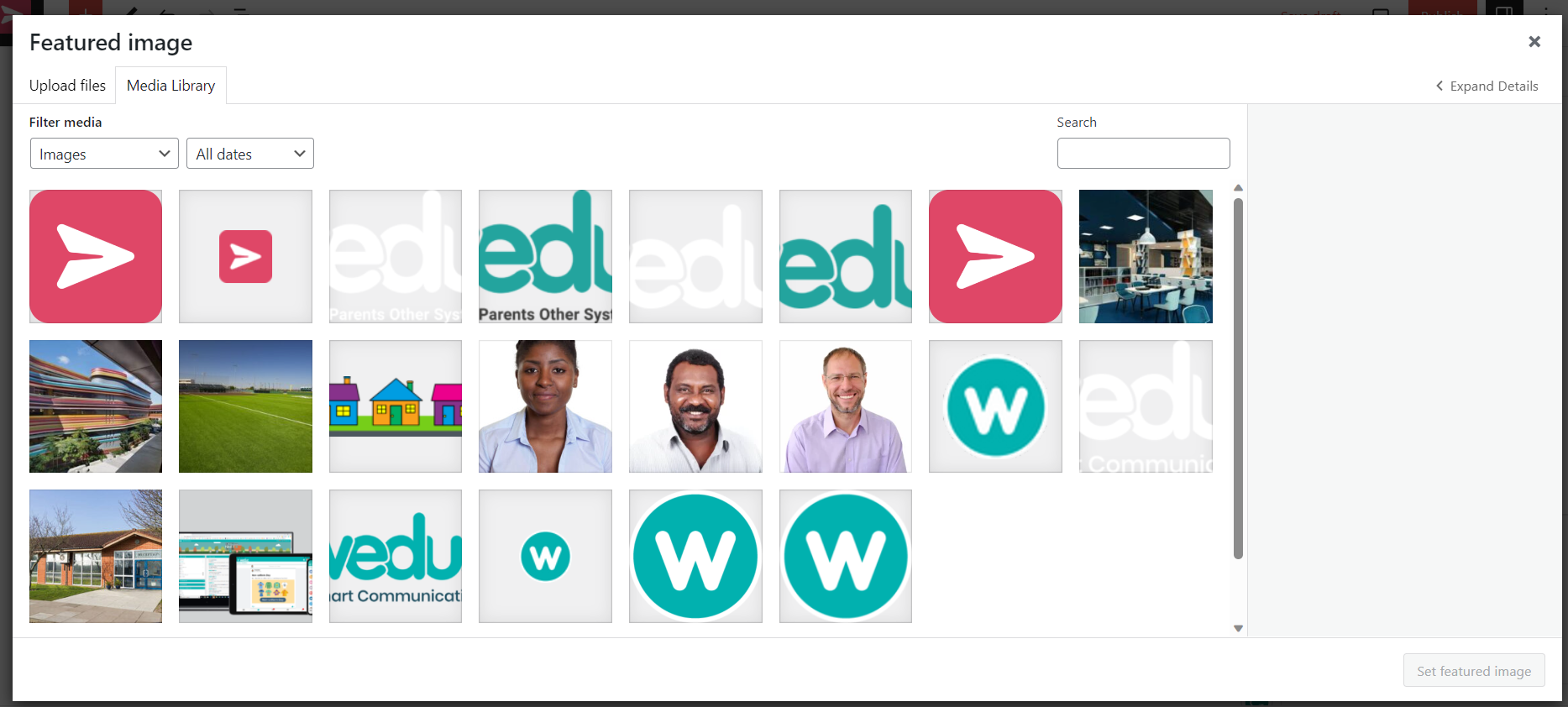This will load the Media Library so that you can either select an existing image or upload a new one. Select the image you wish to use.