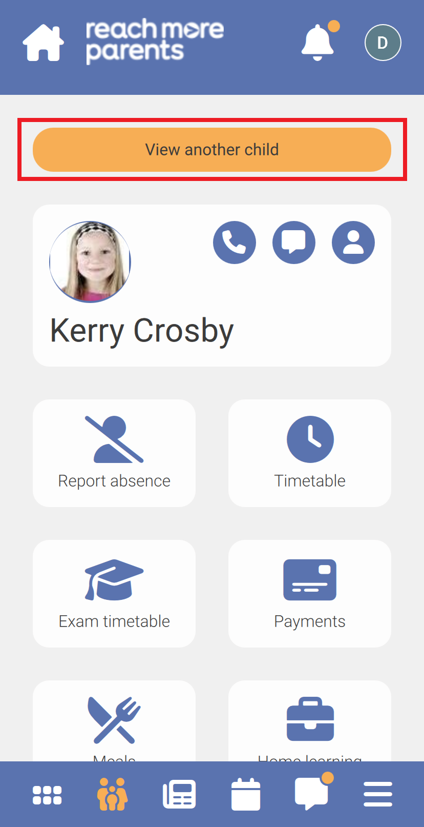 If you have multiple children at the school, you will need to repeat this process for each child. You can switch between children by tapping View another child in the Parent Portal.