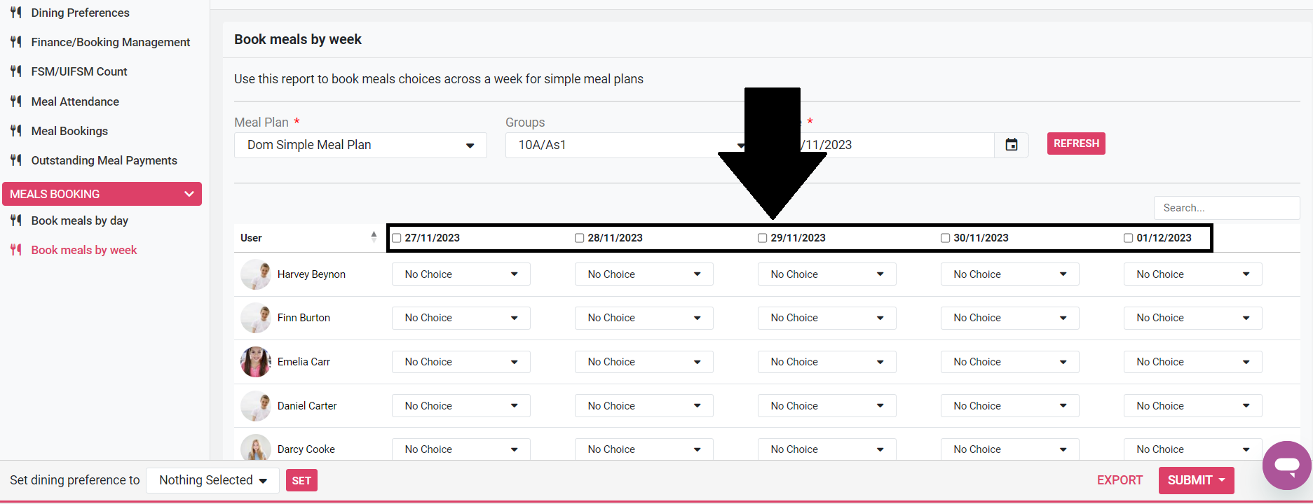 10) Tick the tick-boxes next to each day that you want to set a dining preference.