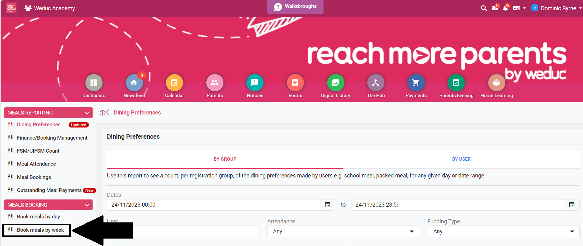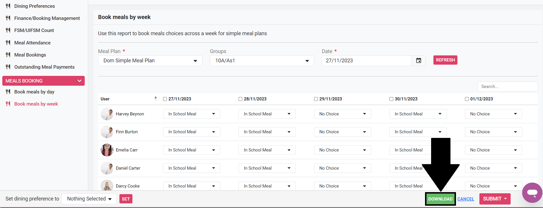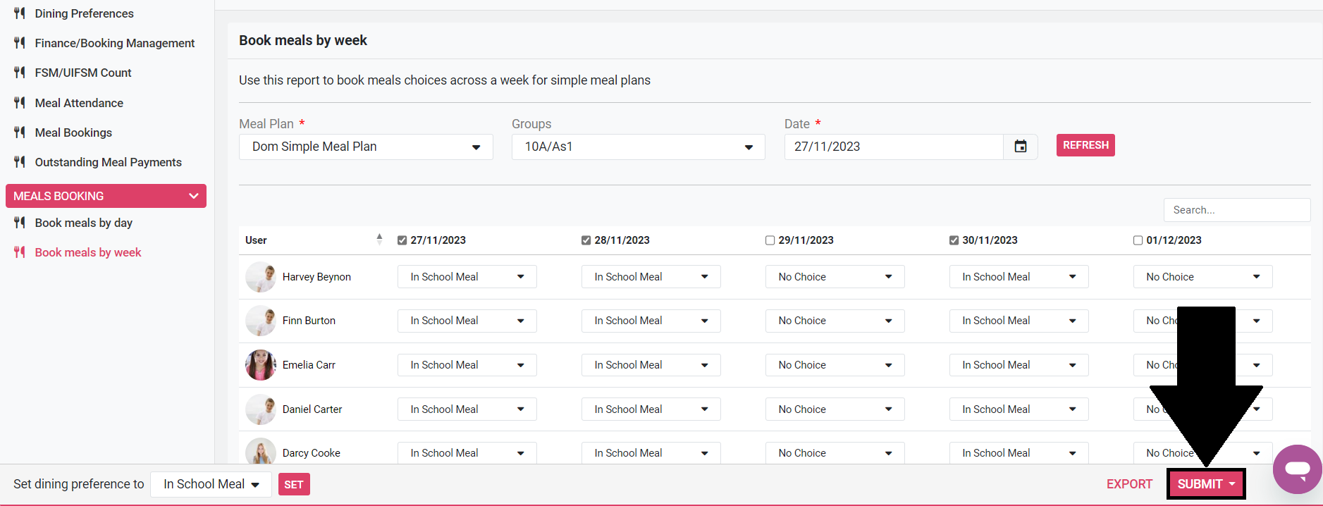 - Parents order meals, but you want your admin staff to check for, or fill in, any gaps that may have been missed.