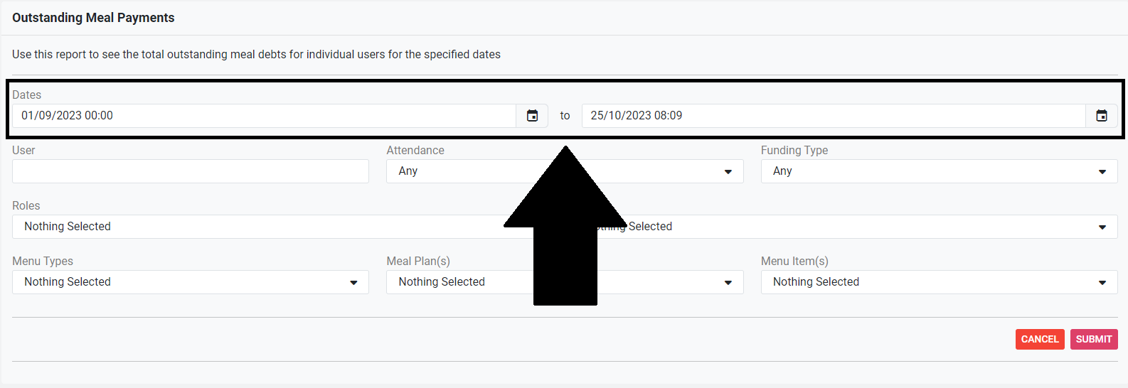 6) Change the dates if necessary. The date range will default to 01/09 of the current academic year up until today's date.