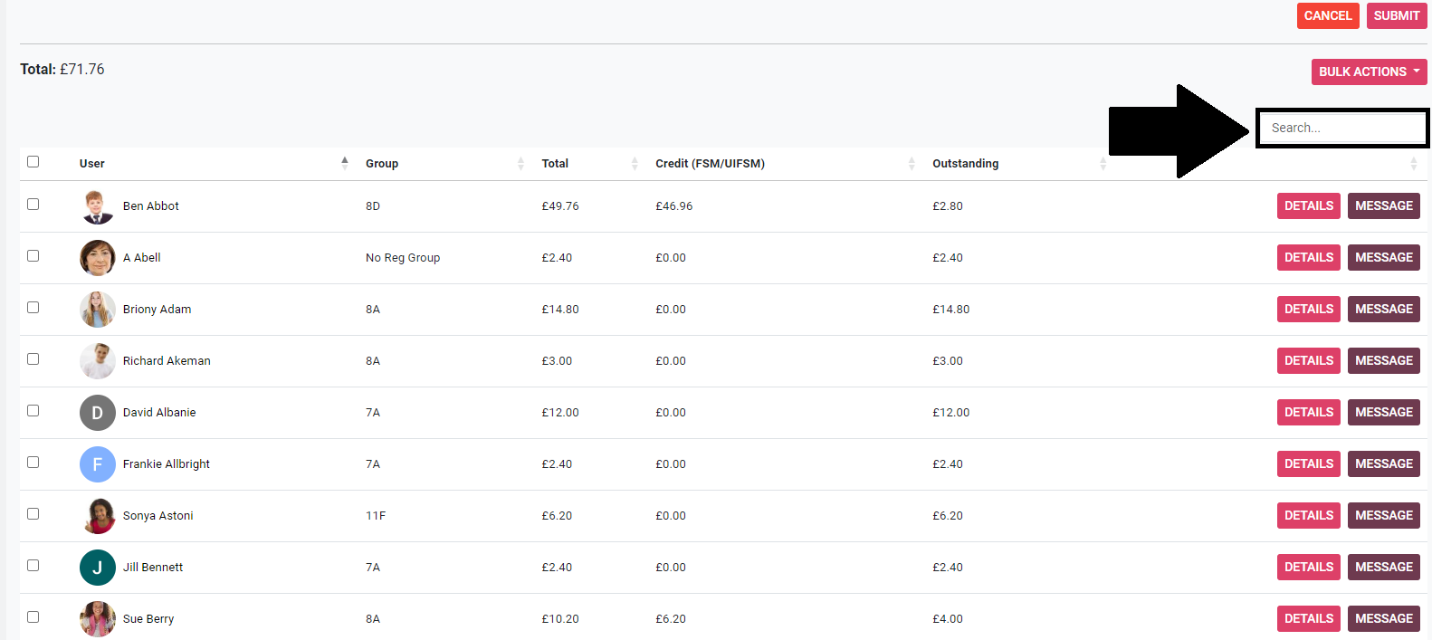 8) Find the user you wish to chase outstanding payments for. If they do not appear in the first page of the report, type their name into the Search field.