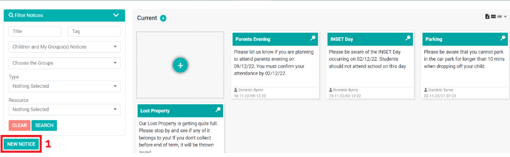 1) Click ‘New Notice’.