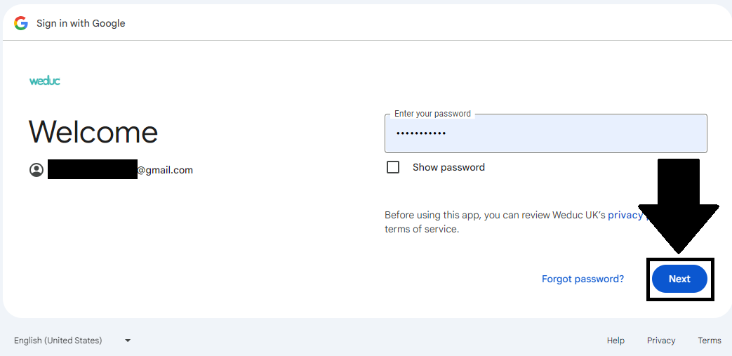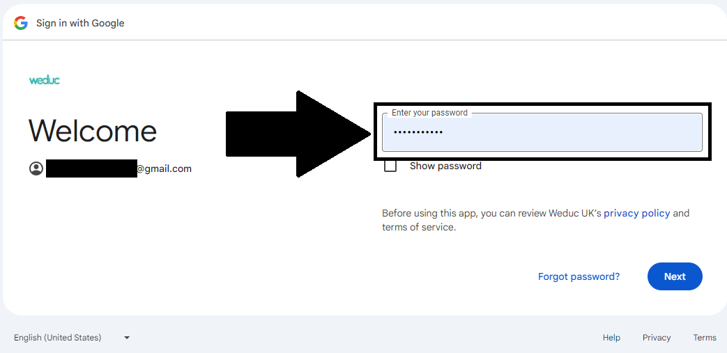 10) Enter the Password of the the school's admin account for Google Classroom.