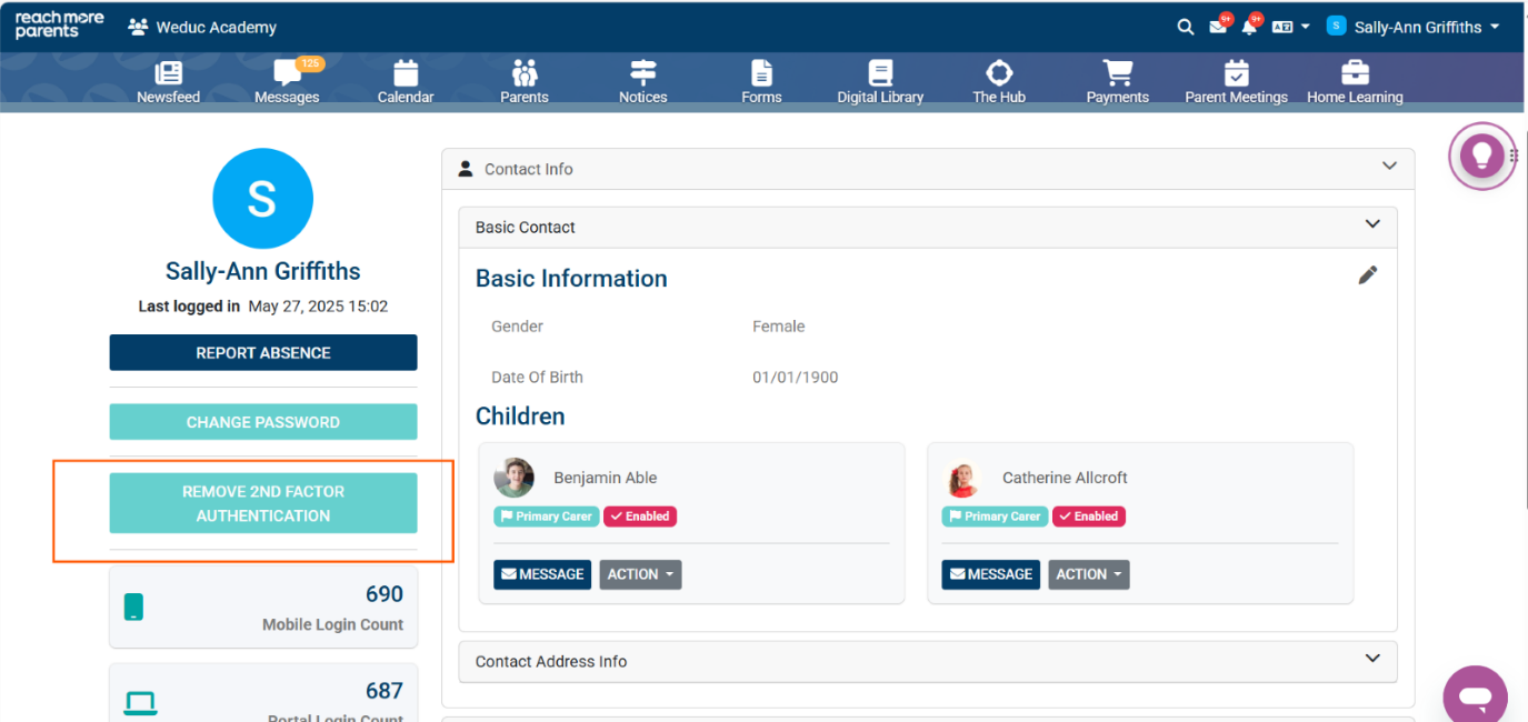 3. Click the button labelled “REMOVE 2ND FACTOR AUTHENTICATION” (see screenshot below).