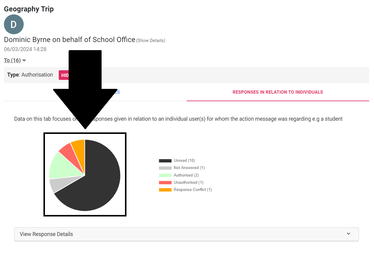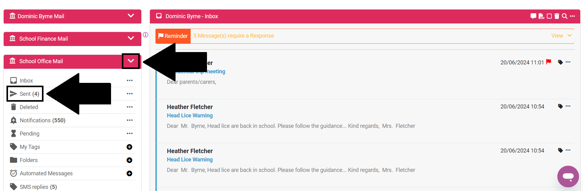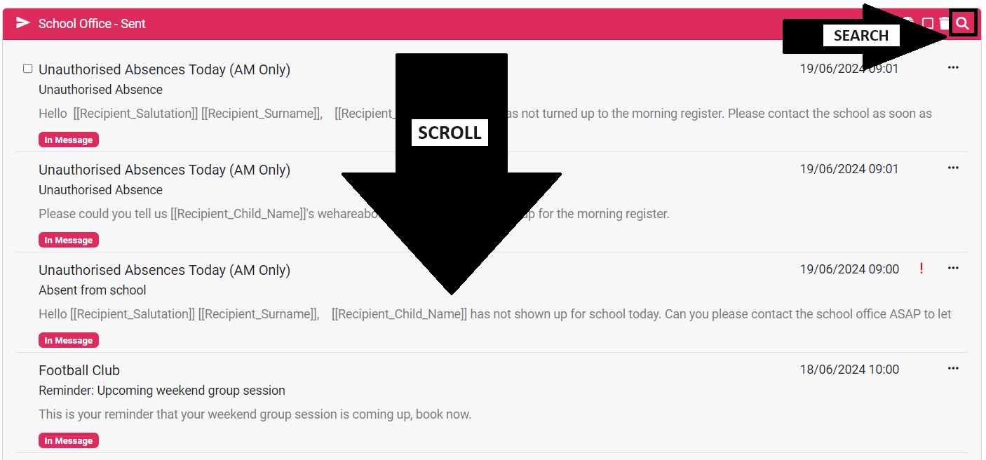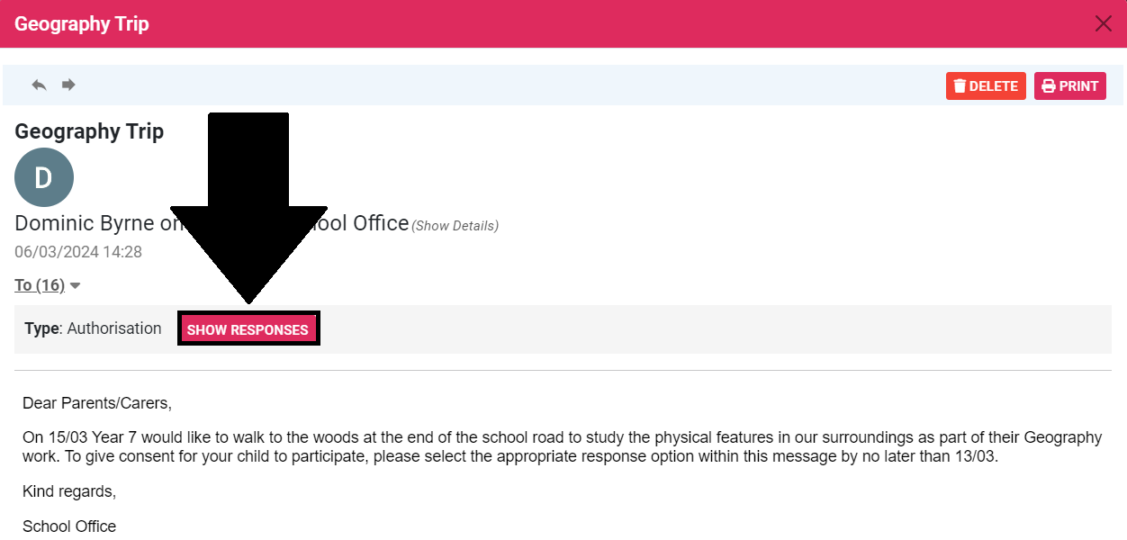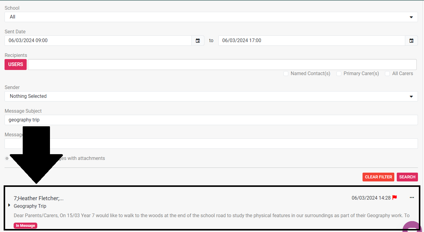 4) Search for the message you sent previously that required parents to respond and Click the message.