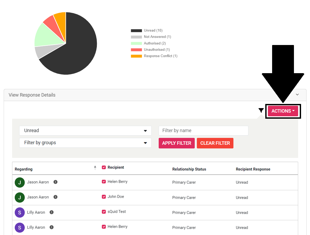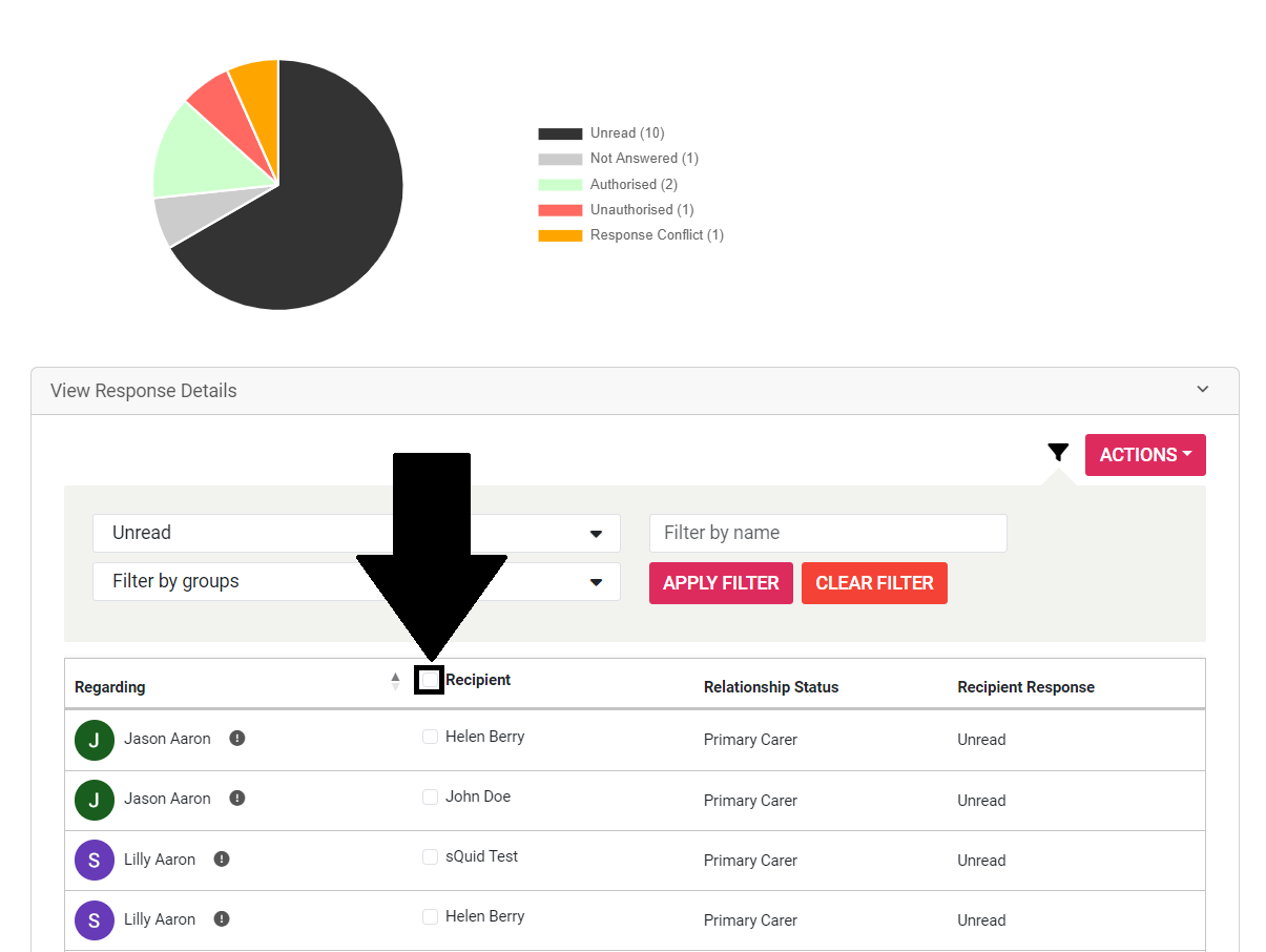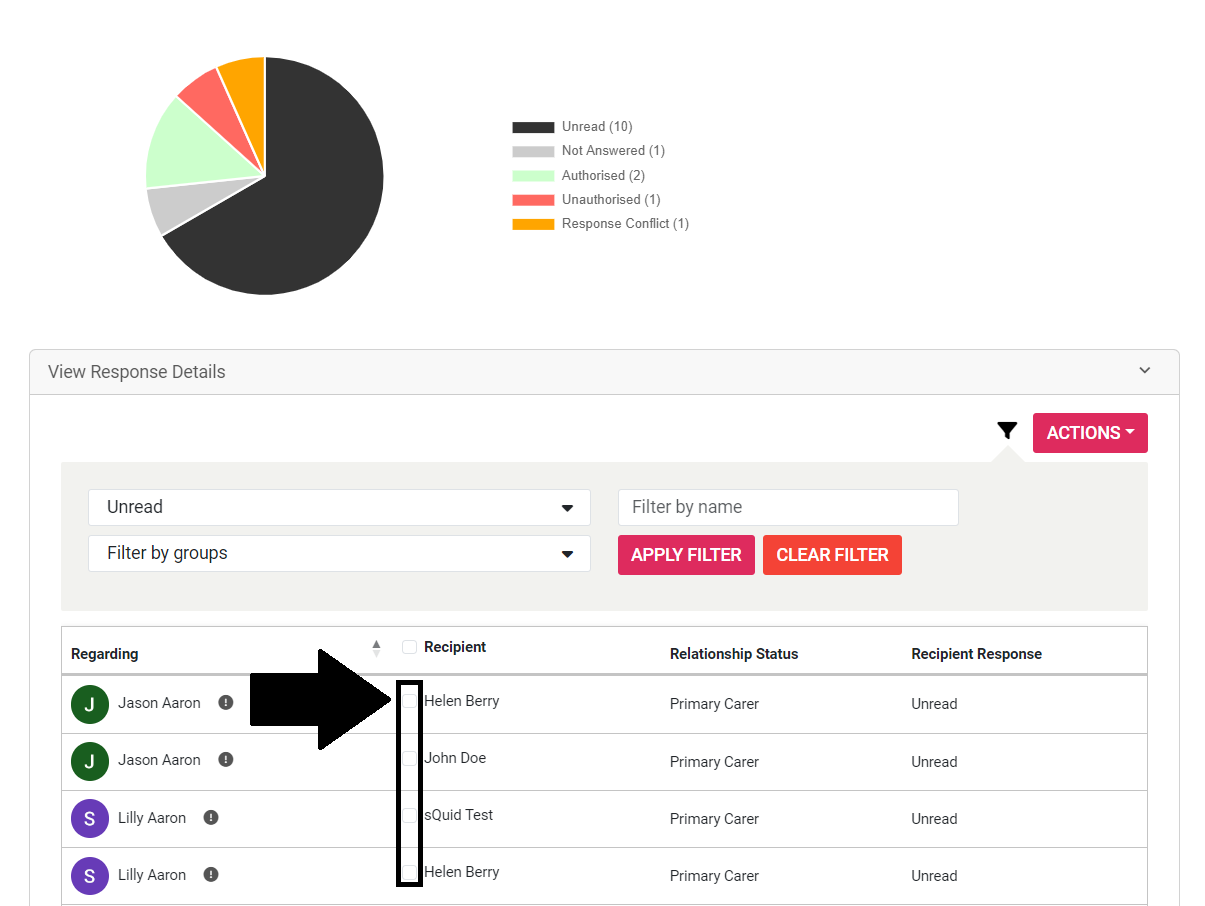 This is really useful for chasing up people who haven't yet responded, or producing a list of those that have.
