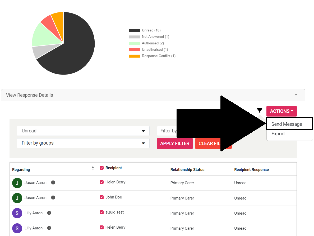 If you have sent a message that requires a response, for a permission slip, meeting invitation or something else, you can easily review your recipient's responses. You can also export a list of these recipients or send them a message based on their response.