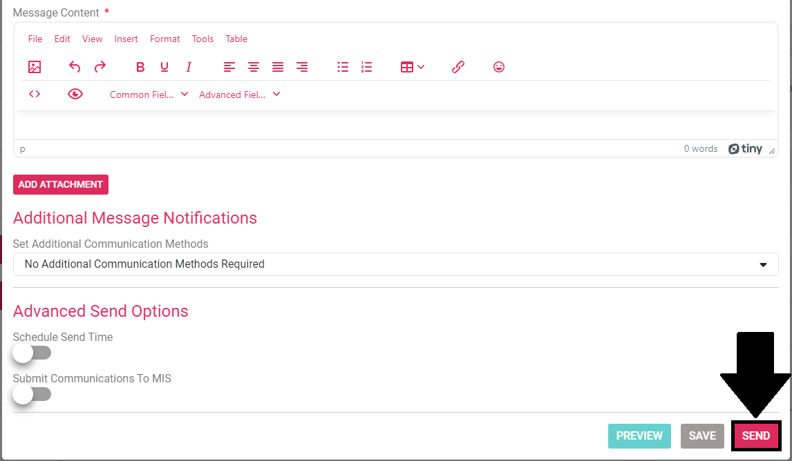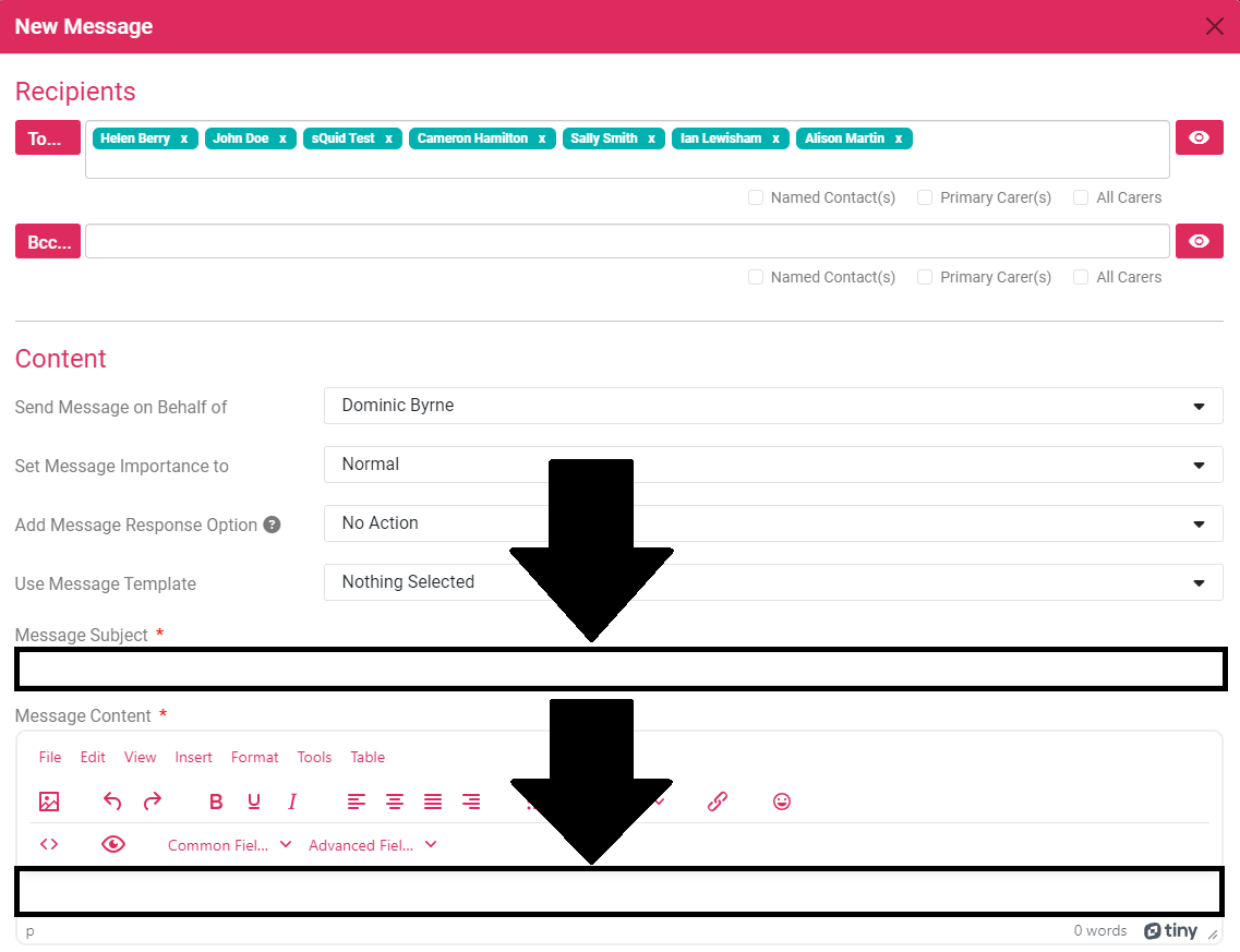 9b) If you want to message the selected users, click Message and type your subject line, message content and Send.