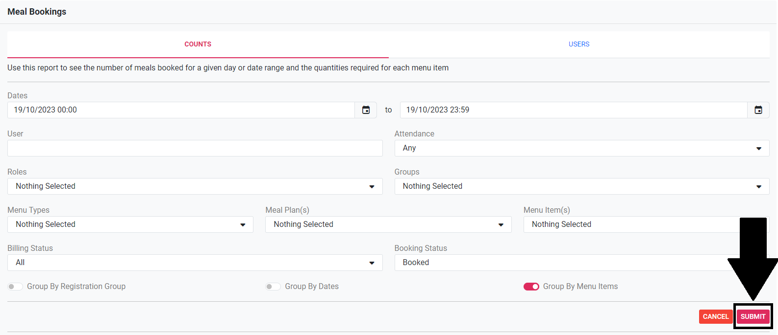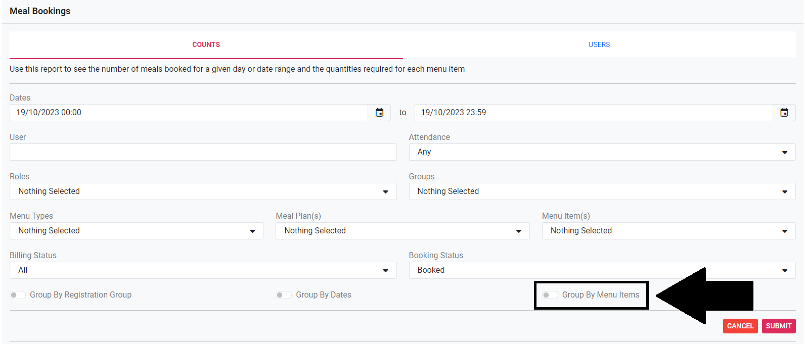 6) Click Group by Menu Items. *If you use a Simple Meal Plan only, skip this step.