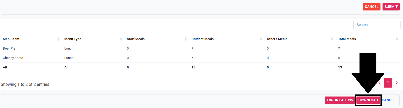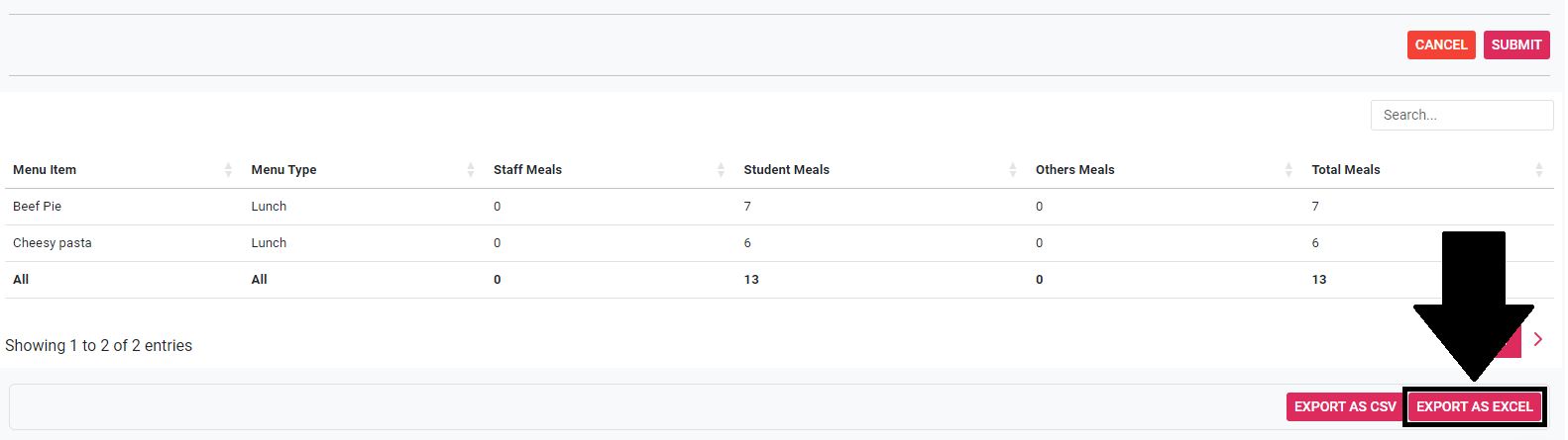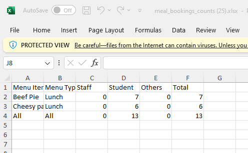 Schools may typically need to provide kitchen staff with a breakdown of how many meals items have been ordered each day so they can start cooking.