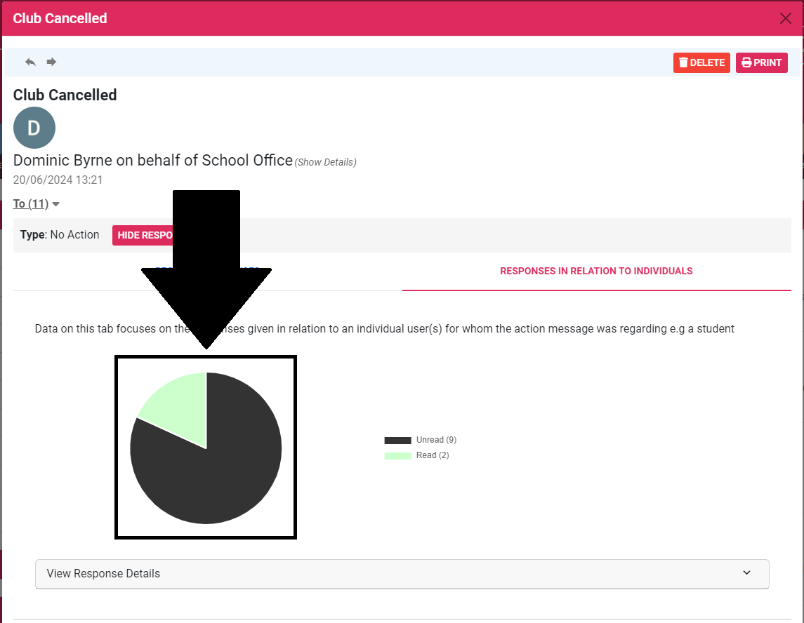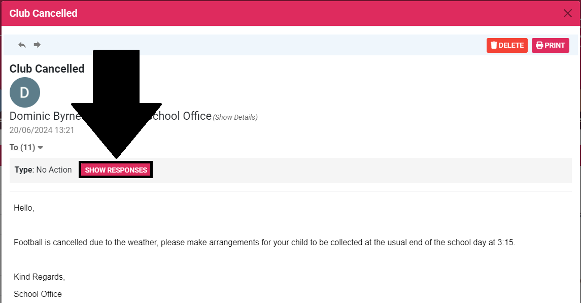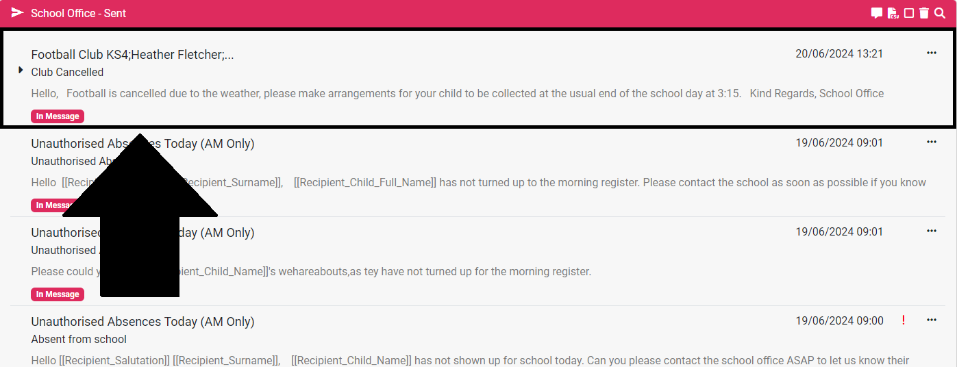 This is really useful for checking if people have seen important or urgent messages, such as club cancellations as you can then produce a list of parents for you to call on the phone or send them a subsequent message, text or email.