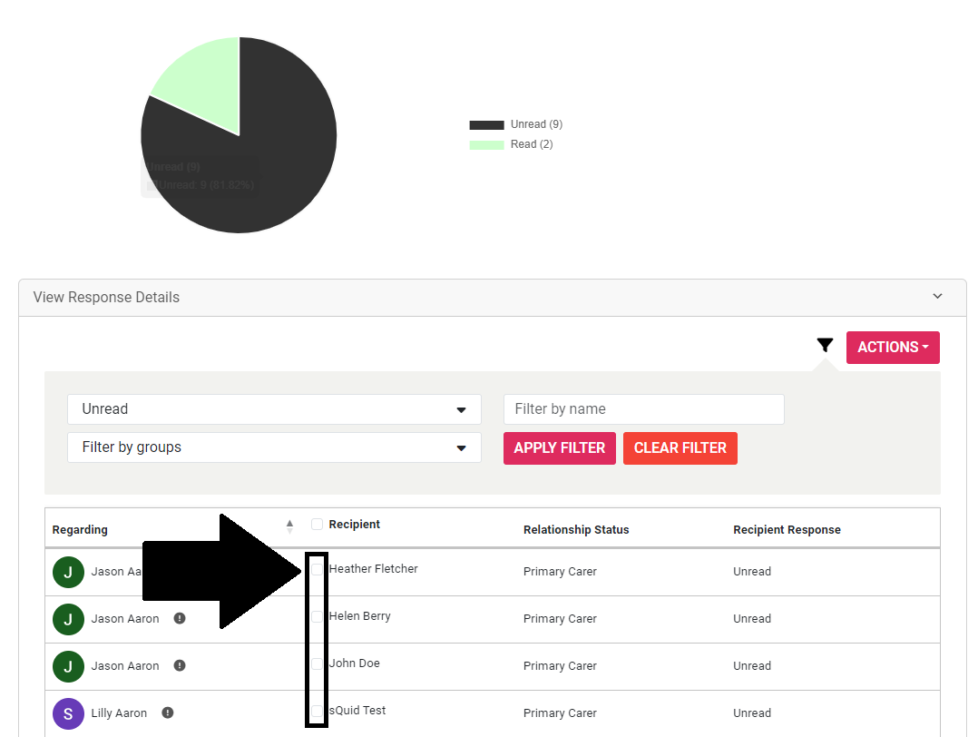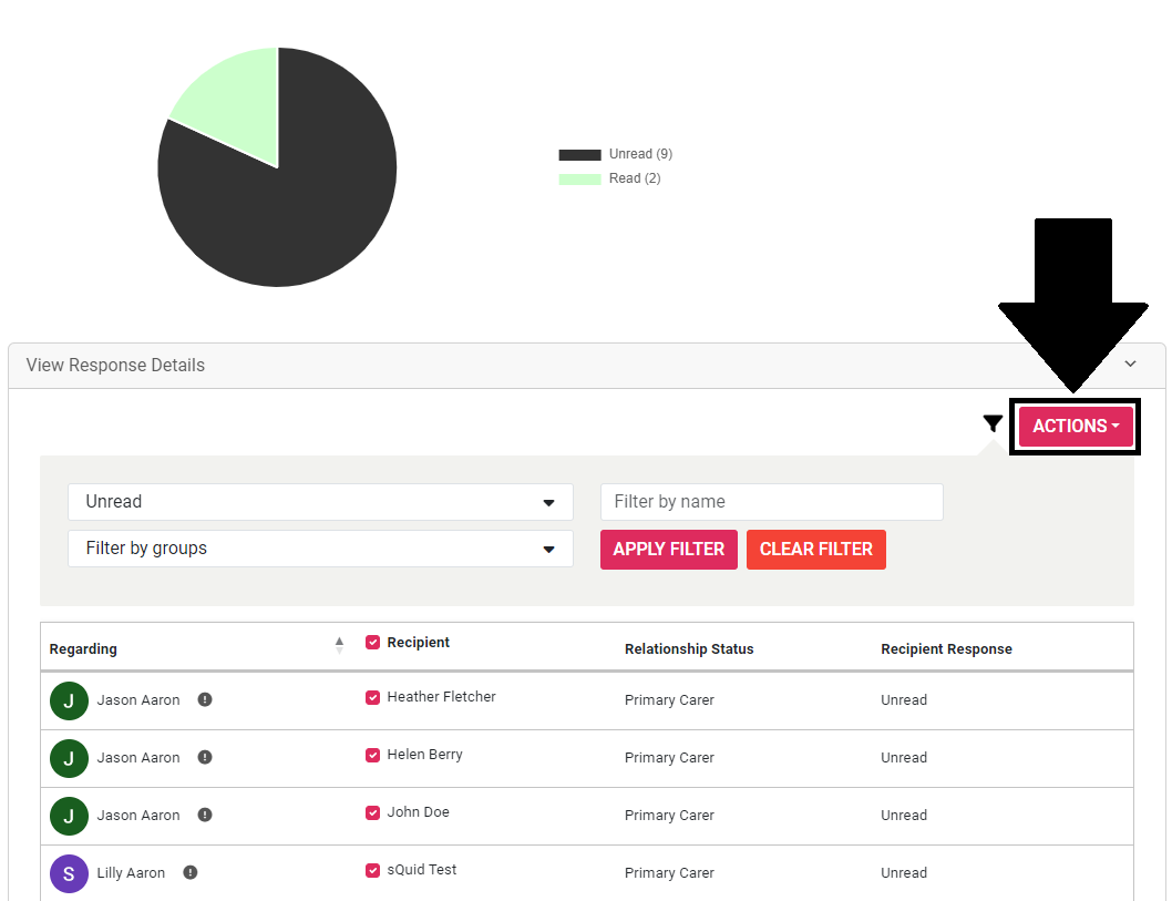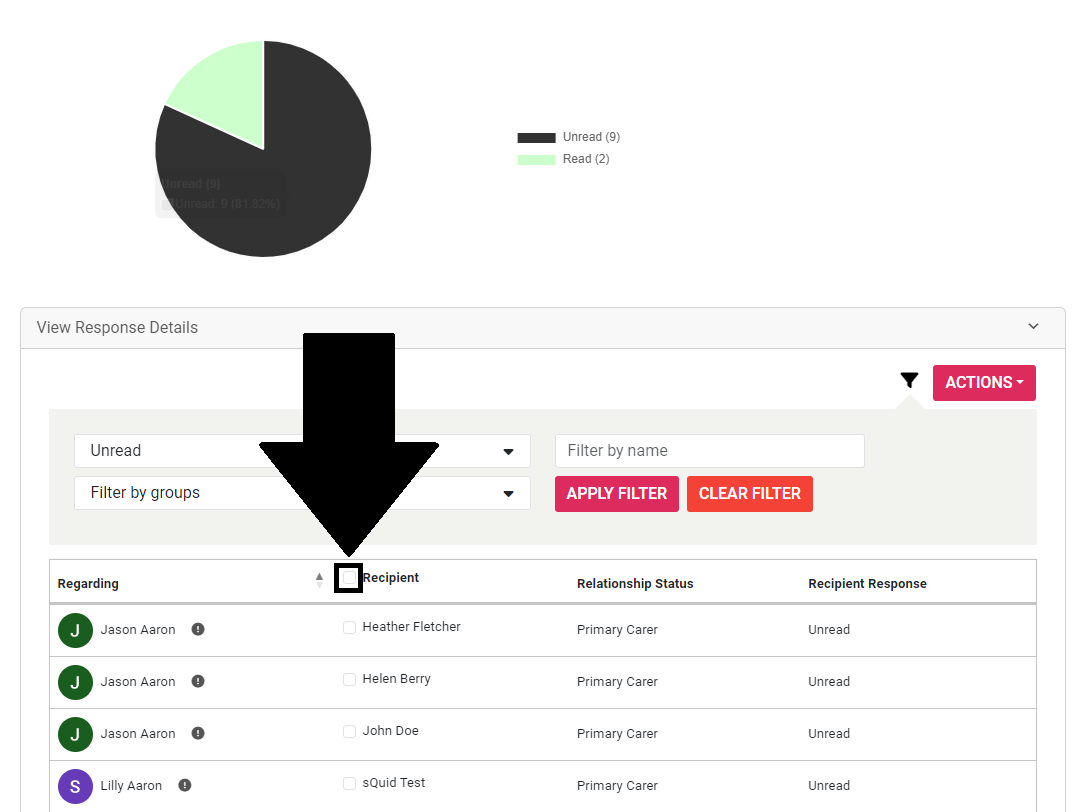 6) Click each area of the pie chart to filter recipients by Read or Unread.
