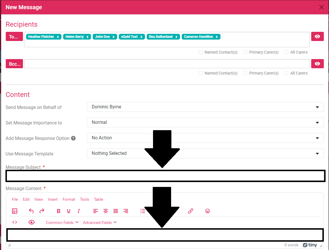 9b) If you want to message the selected users, click Message and type your subject line, message content and Send.