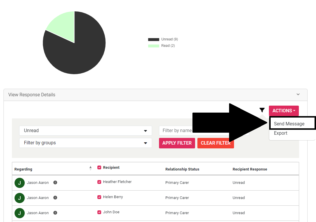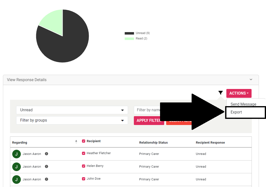 You can also export a list of these recipients or send them a message based on whether they have read the message or not.