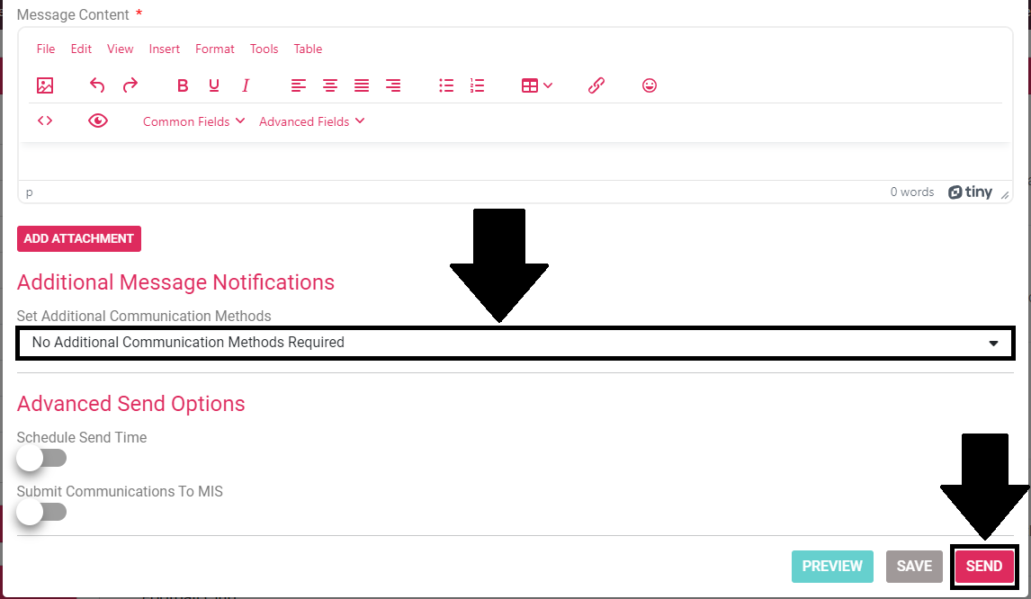 *If you want to send them an email or text message, use the 'Additional Message Notifications' button before clicking Send.