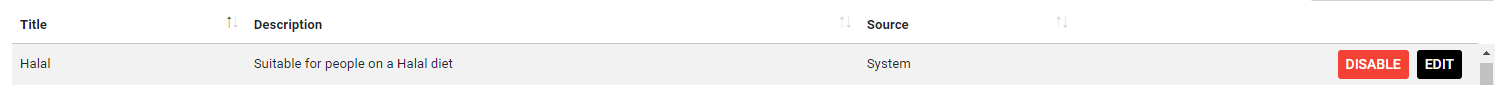Across the top, you will see 2 headings, Allergens and Dietary. This is to help keep the area organised for you.