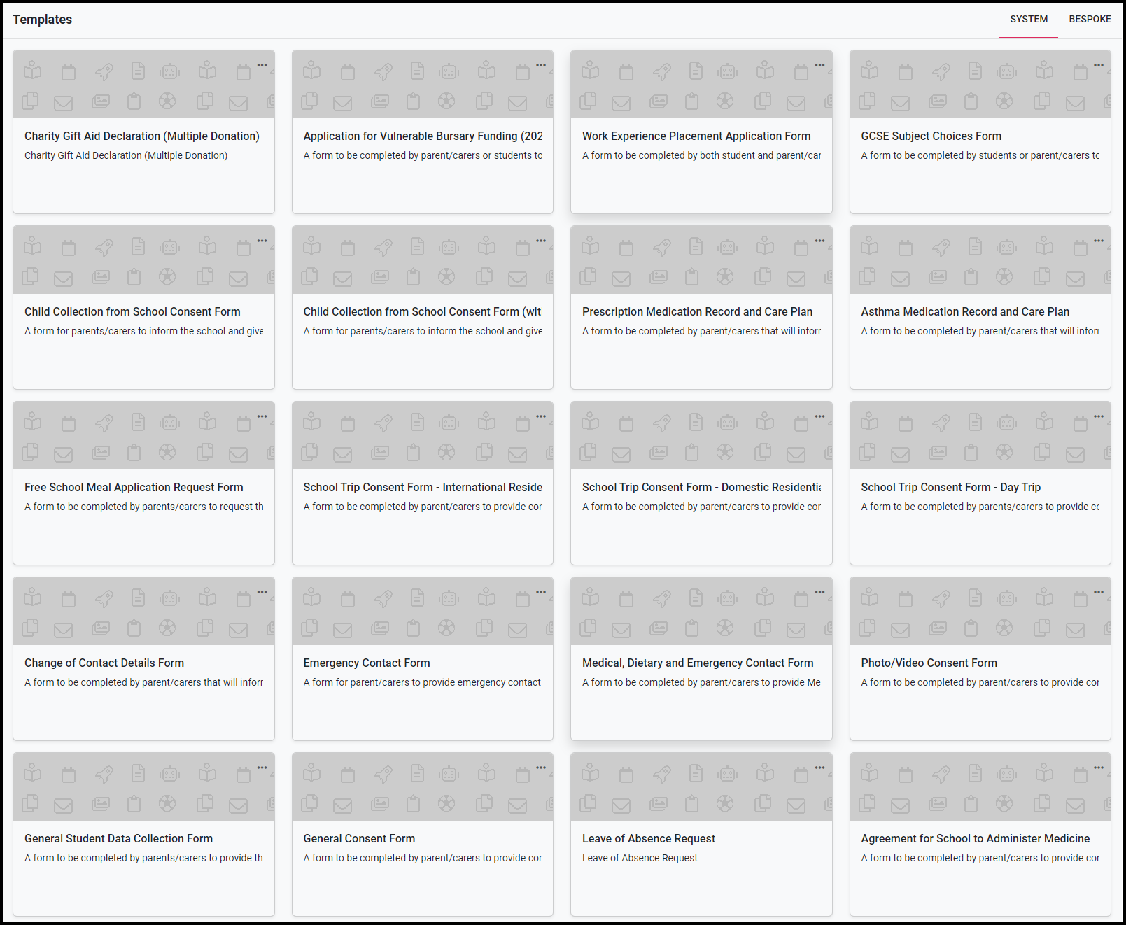Following a full review of the templates available in the Forms area, we have made significant changes, by adding new templates and updating and improving our previous templates.