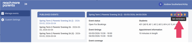 Within the ReachMoreParents, Parent Event Management System we have kept communications at the centre of what we do as per our core ethos. We have as a result made the Parent Event notification process as automated as possible from point of applying those settings against an event. If you haven't created a Parent Event yet, please follow this link and return here when you're ready to reconfigure the notifications when editing an event.