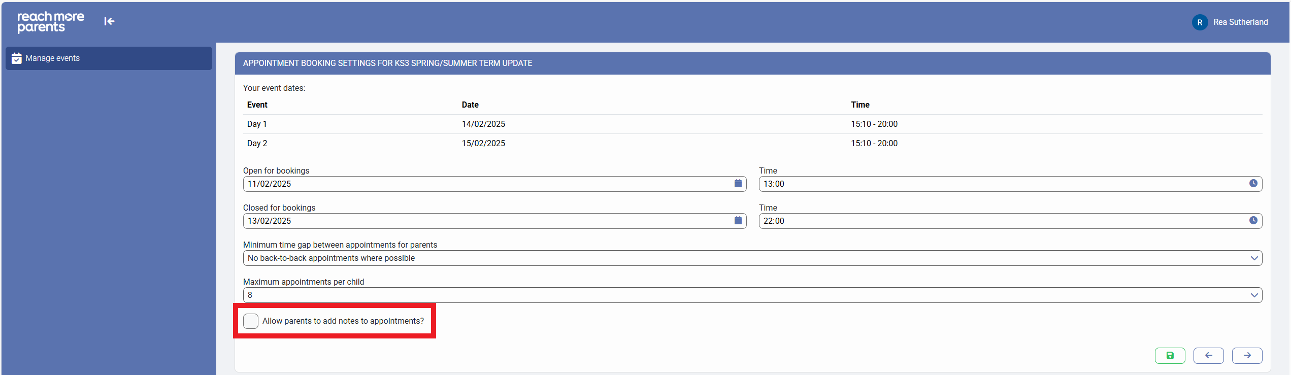 7) Click on "Allow parents to add notes to appointments?" if you would to grant this permission to the parents when they book their appointments