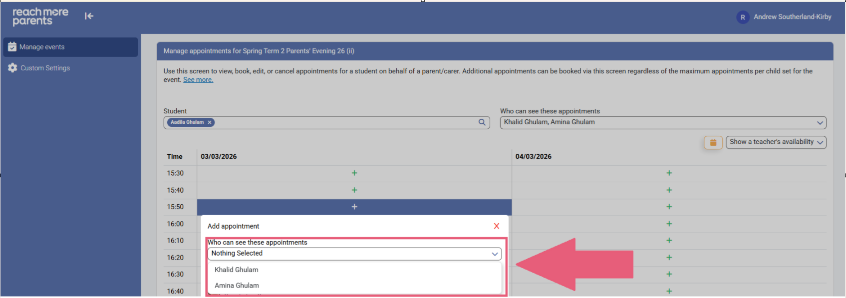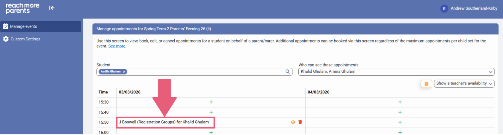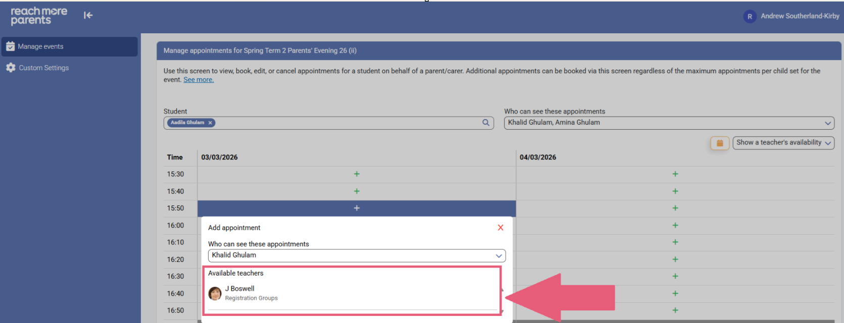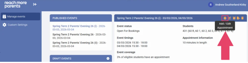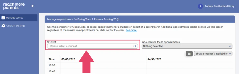 As an admin, if you have been asked to book an appointment for a student's Parent/Carer, to do so in PEMS by ReachMoreParents is really easy. In this article, we will go through the steps to create the appointment for a specific Student.