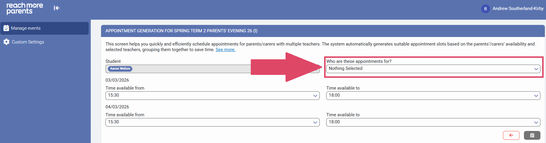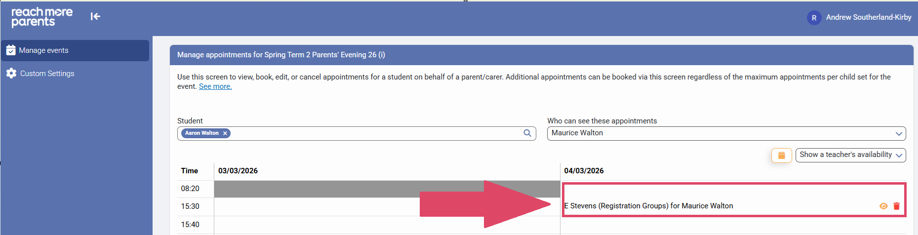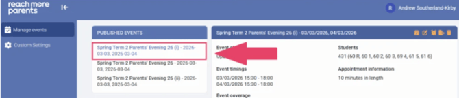 Sometimes, you have a situation where parent/carers may be acrimoniously separated and these two parent/carers may request separate appointments. In this scenario, we would recommend booking these appointments as an Admin before the Event is published to the wider school population.