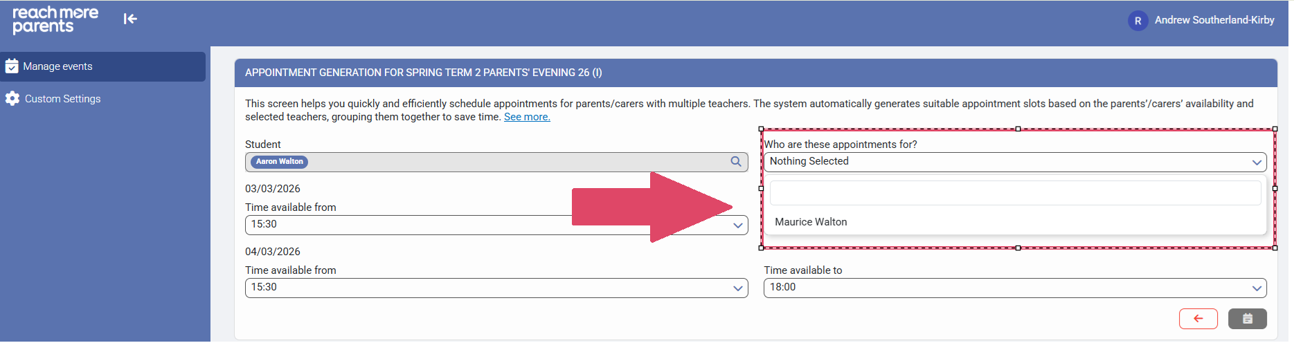 8) Choose the Parent/Carer who you need to book the appointments for from the list and remove any who you don't need to book these appointments for