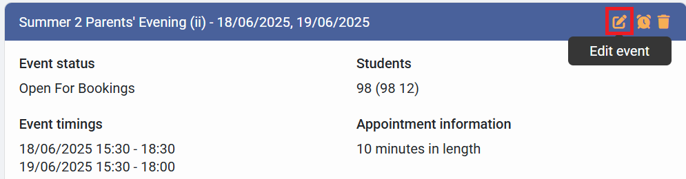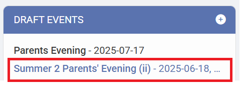 2) Once you have moved the event click on the event name again in the drafts section and then click the bin icon to delete previously booked appointments.