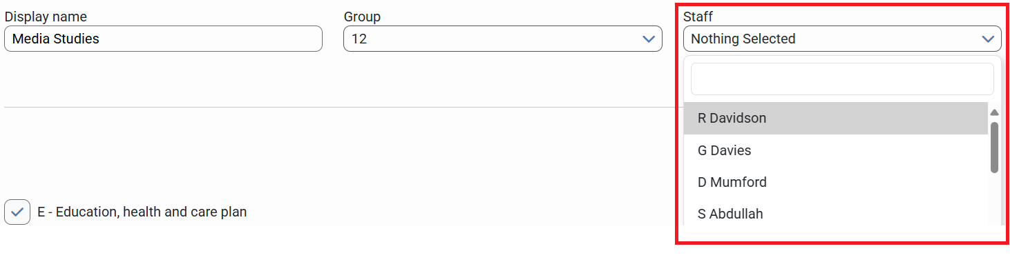 4) Click on the 'Staff' dropdown and select staff you wish to add, or alternatively type the name of the staff into the text field.