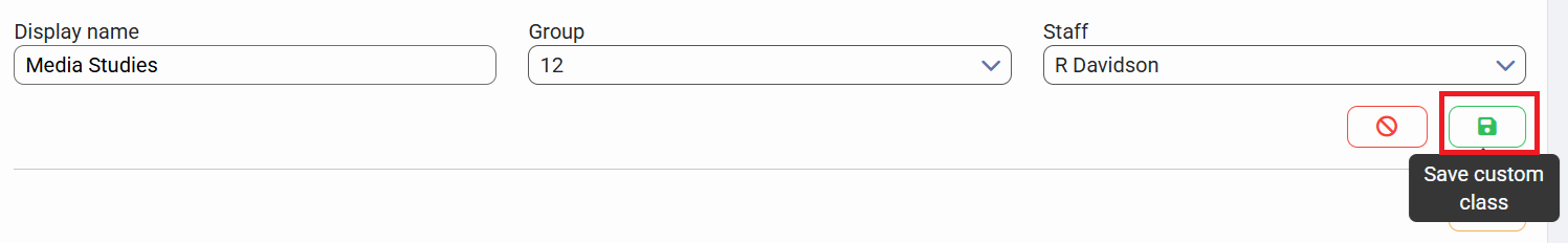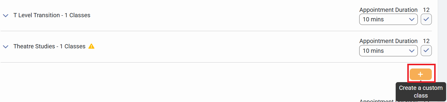 1) On the "Classes & Teacher Settings" screen, if the subject you need to include isn't listed, click on the + to create a custom class (at the bottom of all the classes, on the right side of the screen)