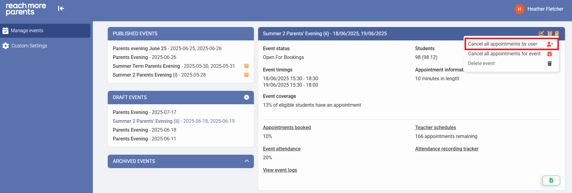 *NB: If you have cancelled any appointments (as outlined in steps 3 to 7), parents will need to re-book their appointment(s) with the substitute teacher that has been added to the event.