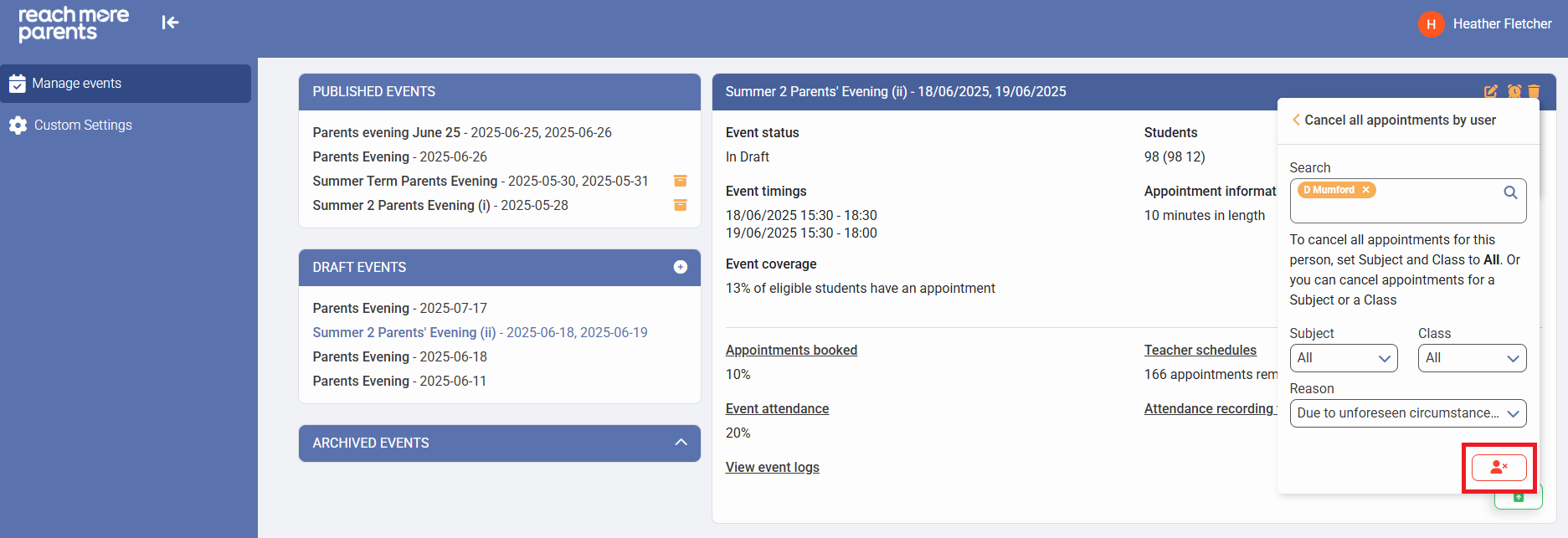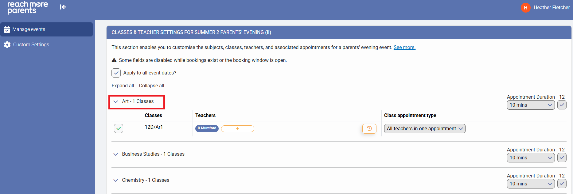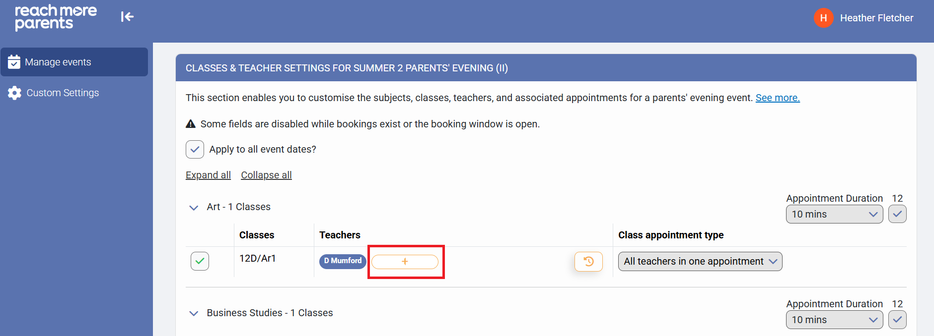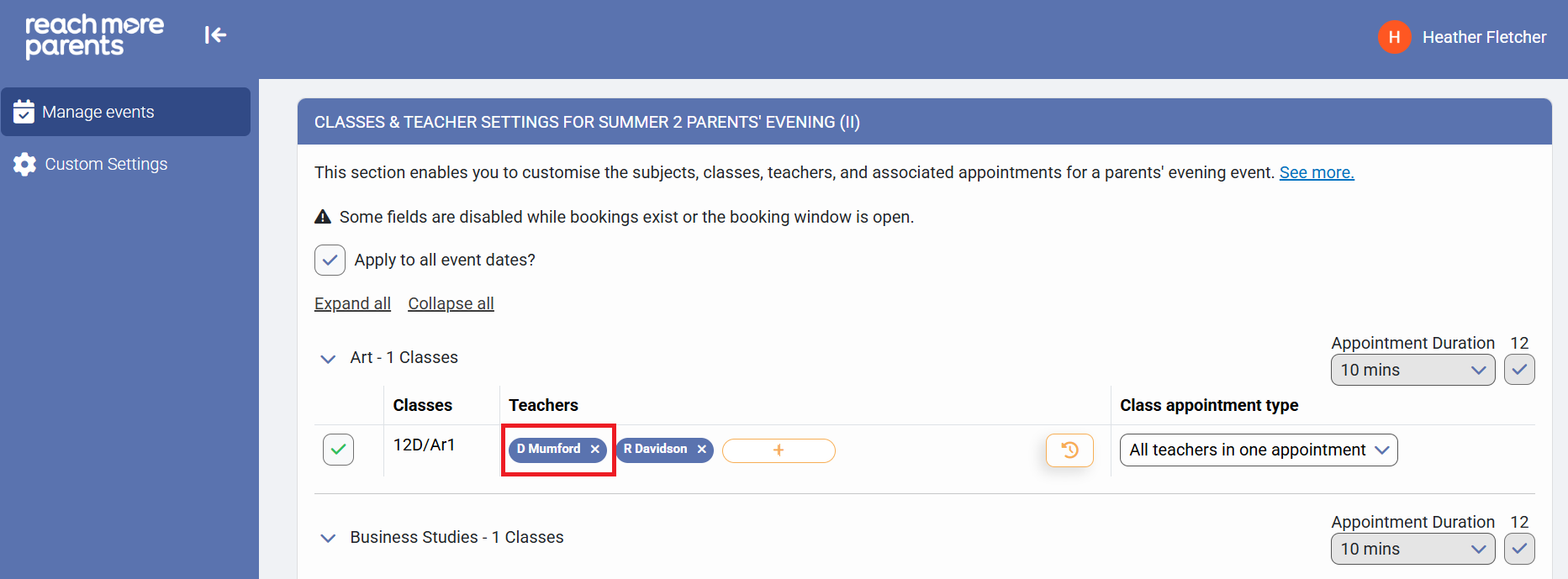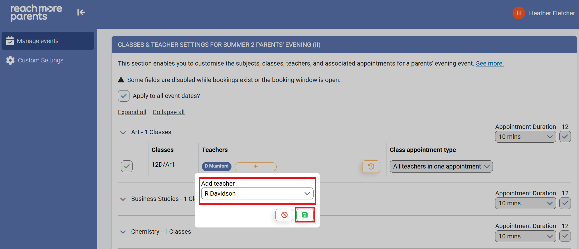 In this article, we will cover the scenario where a teacher for a subject, for whatever reason, cannot attend the parent event. We will be removing one teacher and replacing them with a substitute.