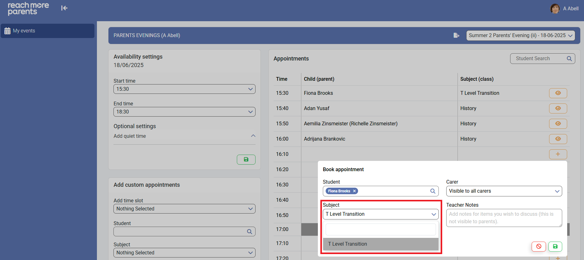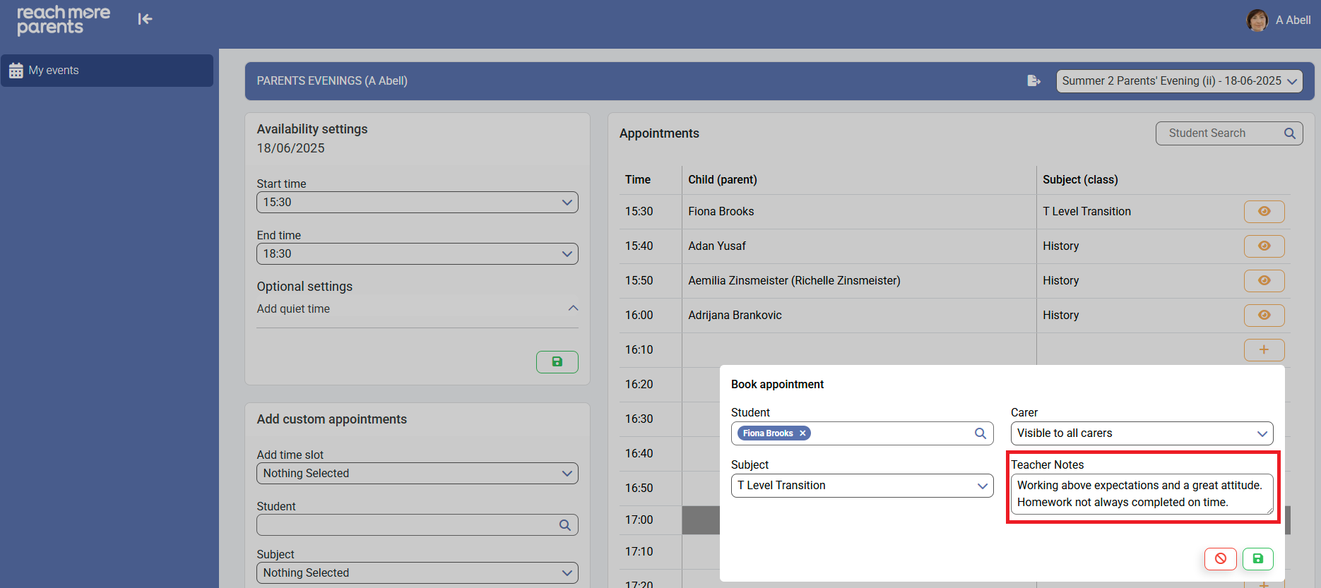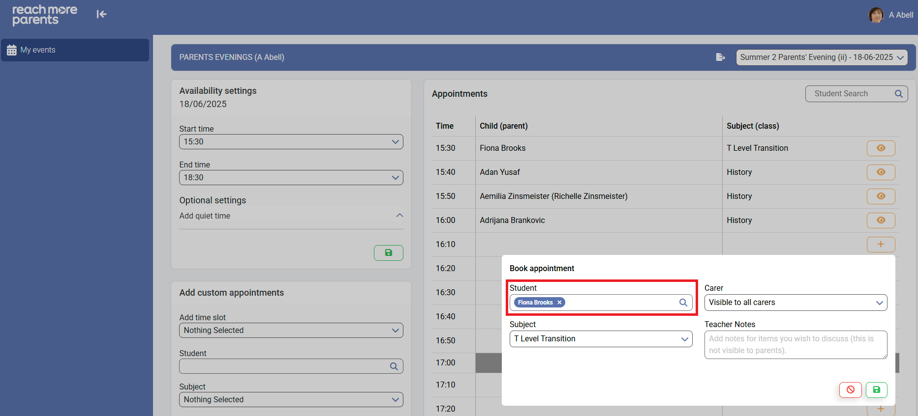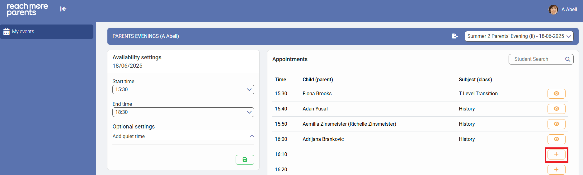In this article, we will be going through the process of creating new appointments as a teacher, on behalf of the parents for a PEMS event.