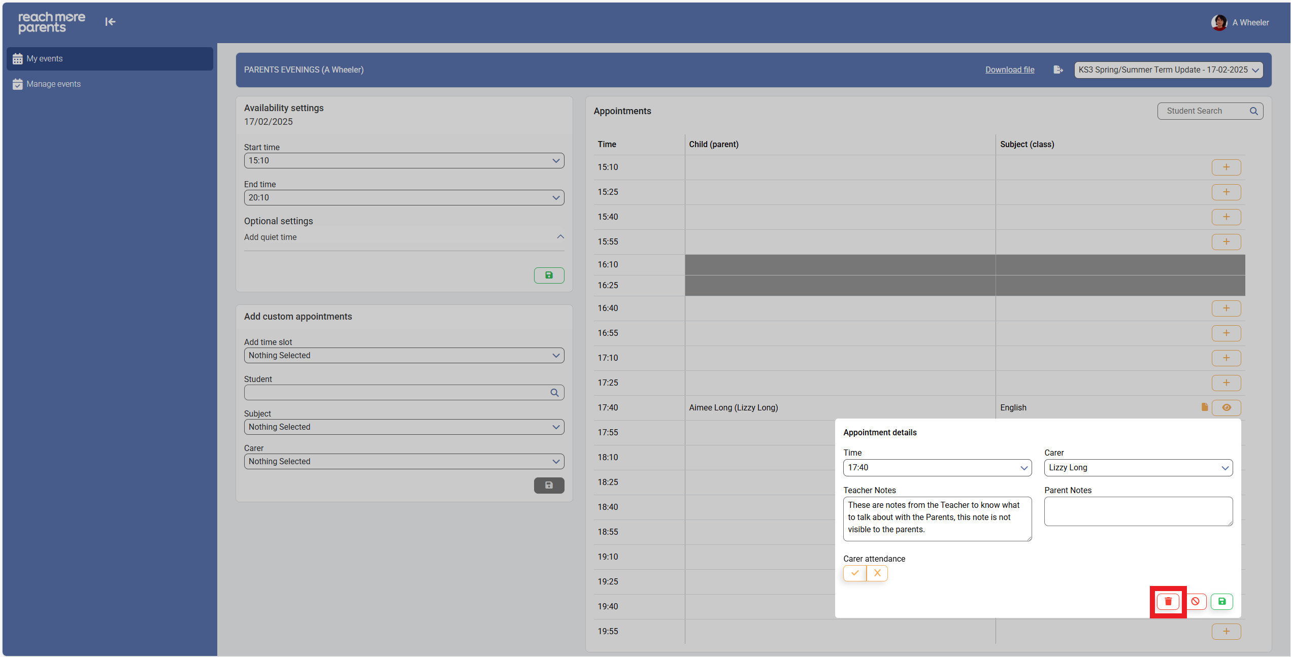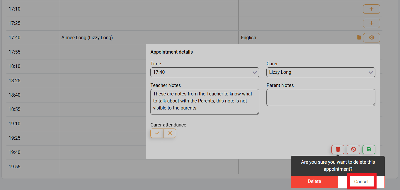 In unforeseen circumstances for either yourself, or the Parent / Carer booked with you, an appointment may need to be cancelled. In this article, we will go through step by step how to cancel an appointment as a Teacher.