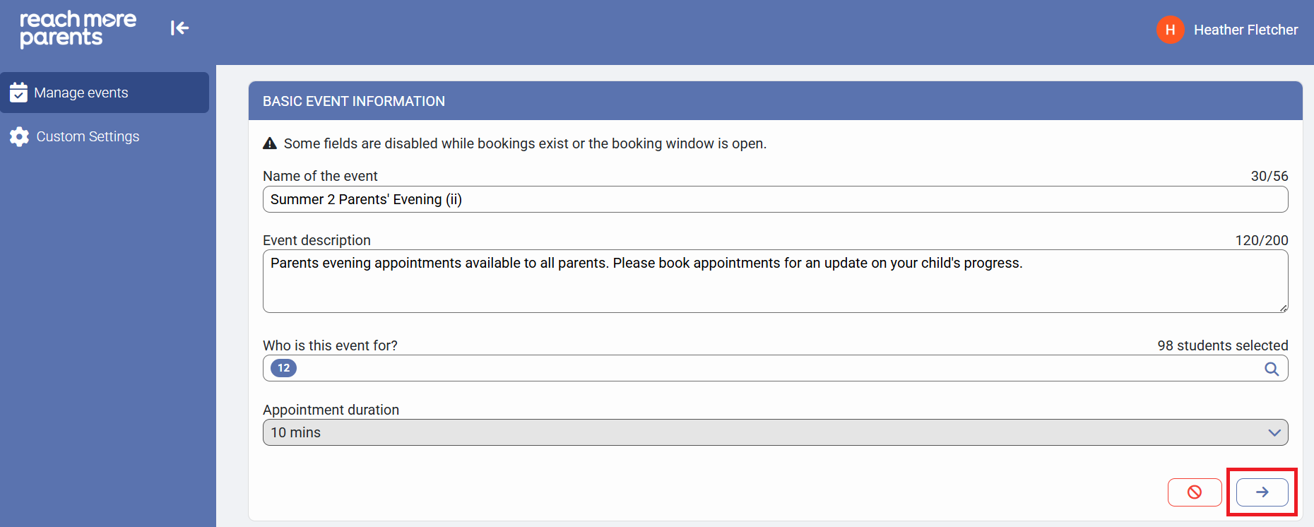 7) Click on the "Closed for bookings" date field and type the new closed for bookings date