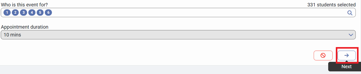 6) Click on "Next" to proceed to the "Appointment Booking Settings for [Event Name]" screen