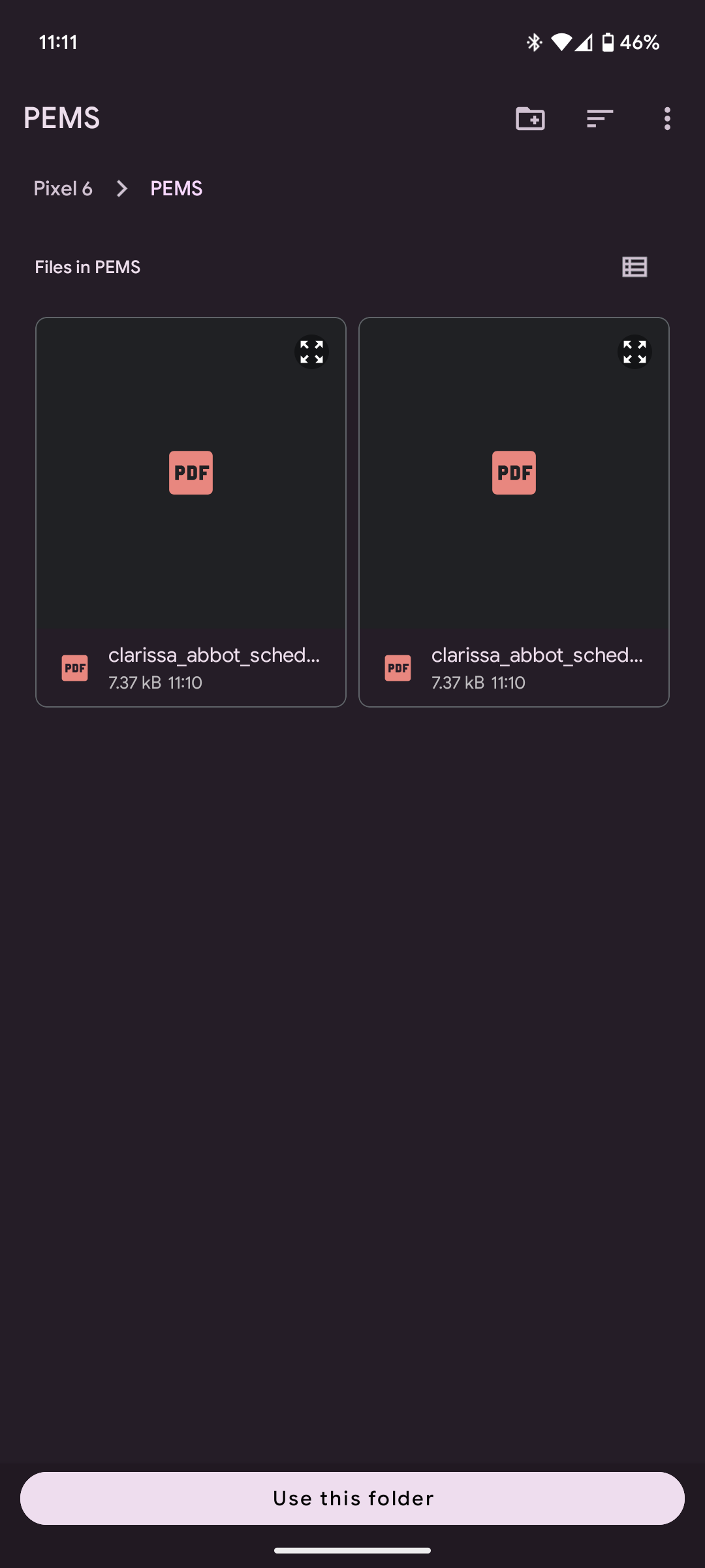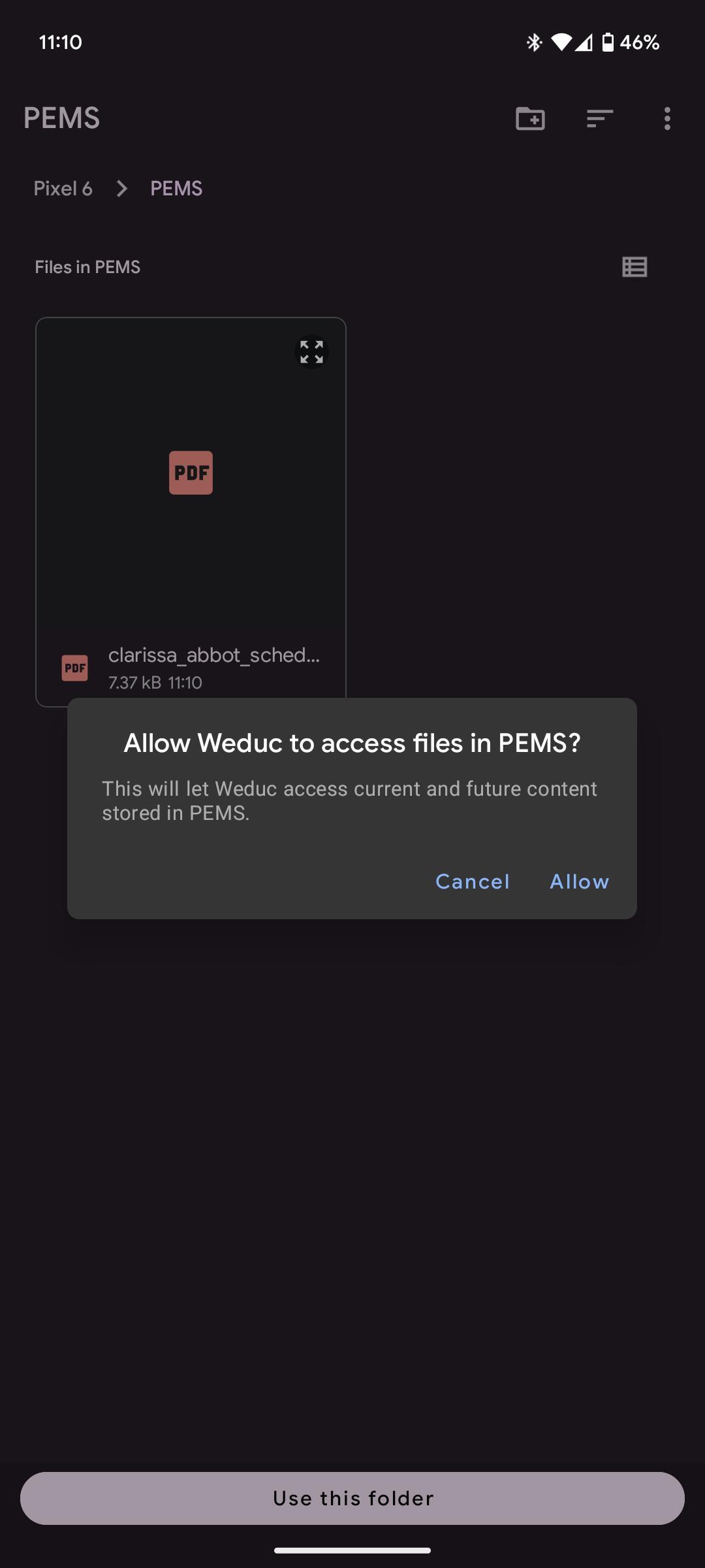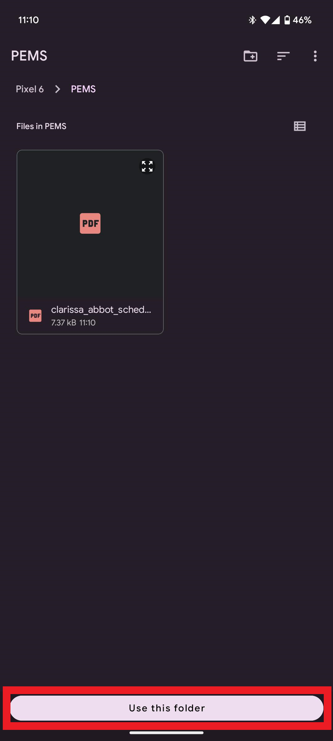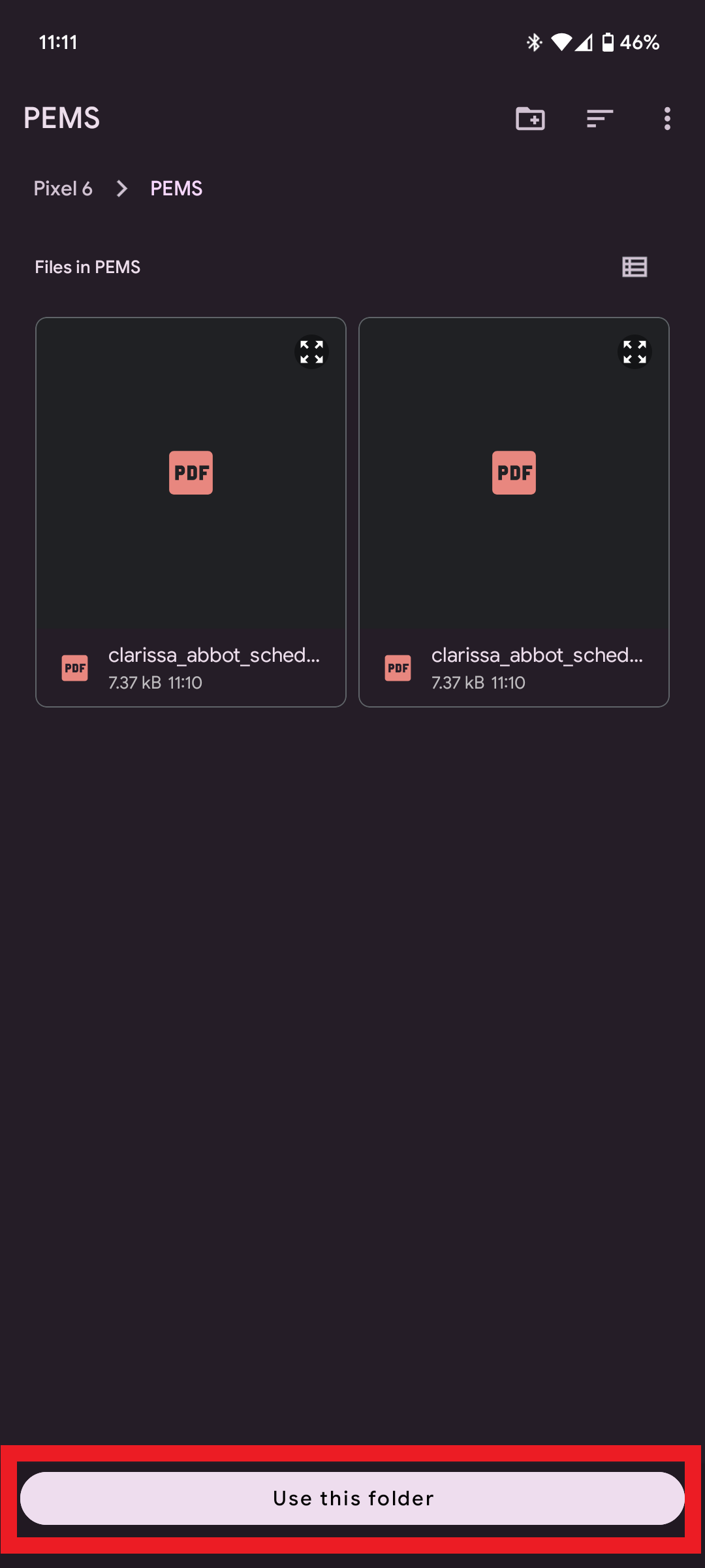 5) Tap on "Use this folder" to download the PDF to this location on your device