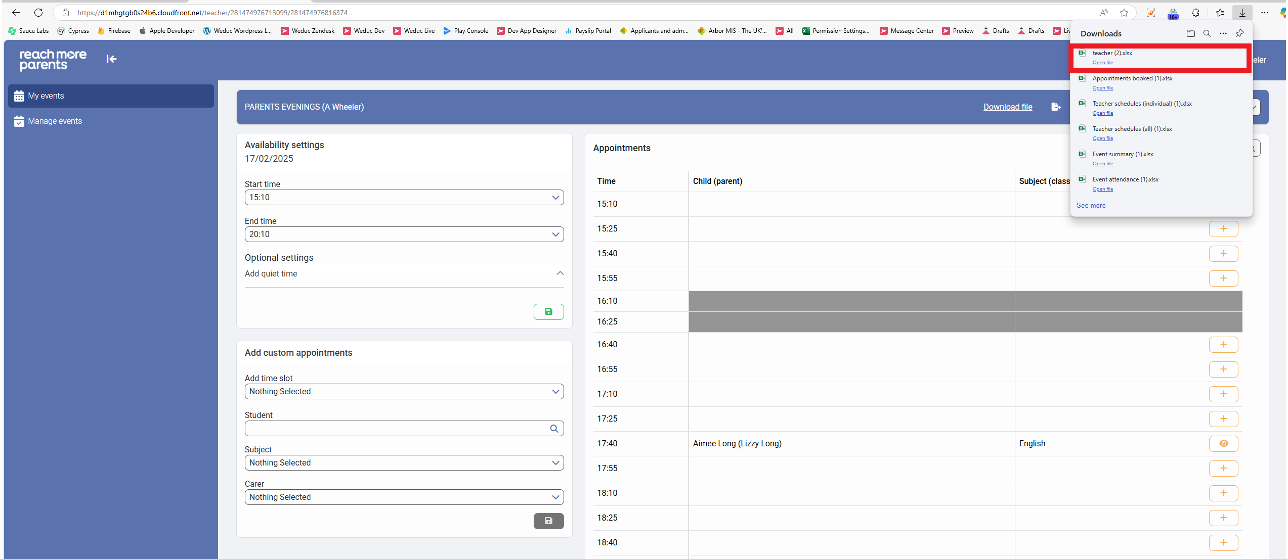 (PEMS) How to export my appointment schedule for an event as a Teacher