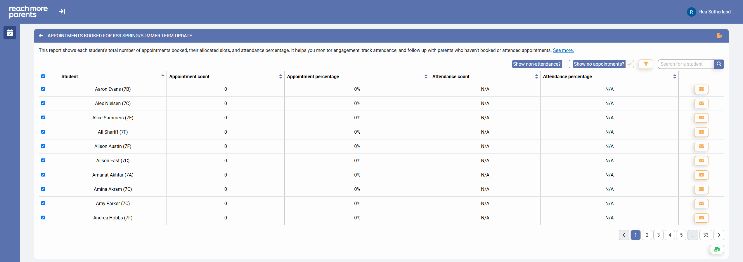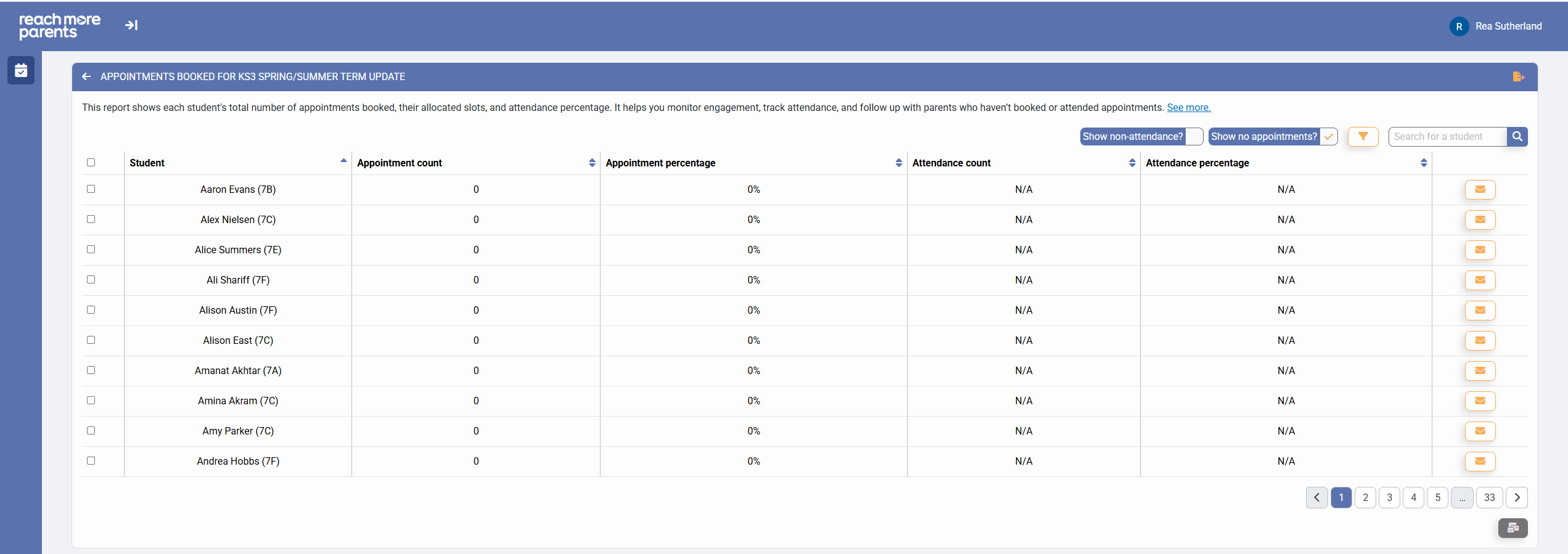 With this in mind, we have added a report with messaging functionality to allow you to still manually communicate with your parents who haven't yet created an appointment for your Parent Event. This article details how to create and send this message, step by step.