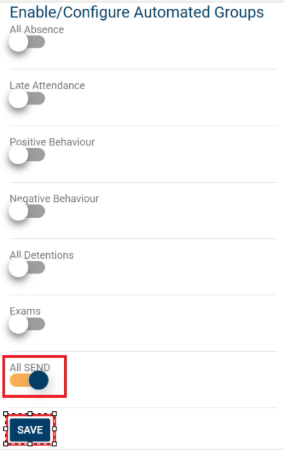 5. Click on the ‘All SEND’ toggle switch and then click ‘Save’.