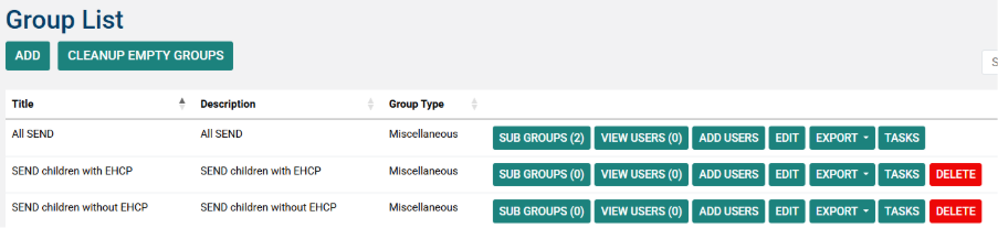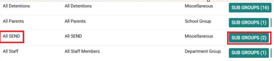 10. You should now see an ‘All SEND’ group with two subgroups of “SEND Children with EHCP” and “SEND Children without EHCP”