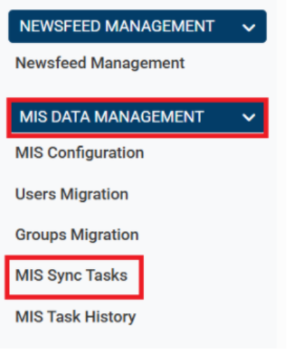6.Return to the School Administration menu (left side of the page), scroll down to ‘MIS Data Management’ section and click on the ‘MIS Sync Tasks’ link.