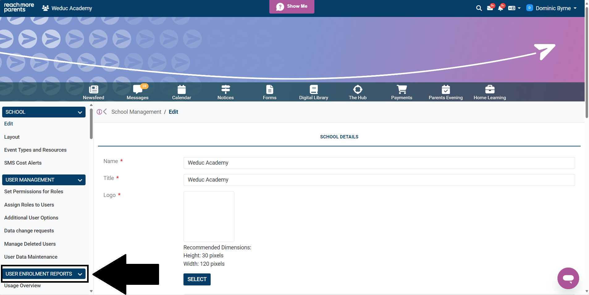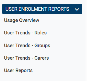 Usage Reporting can now be found in the User Enrolment Reports area via the admin menu. Follow the below instructions to find the new location of Usage Reporting: